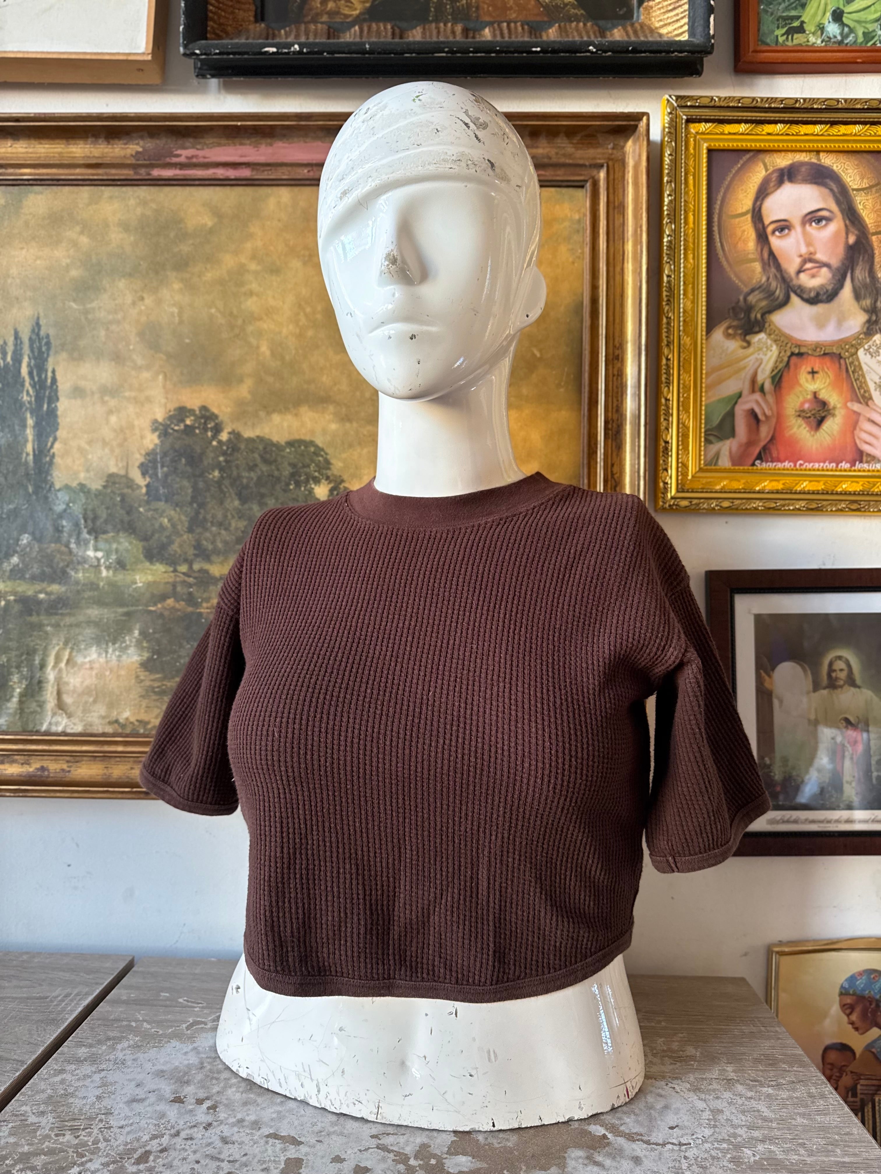 Brown Waffle Knit Short Sleeve Crop Top Size 2XL