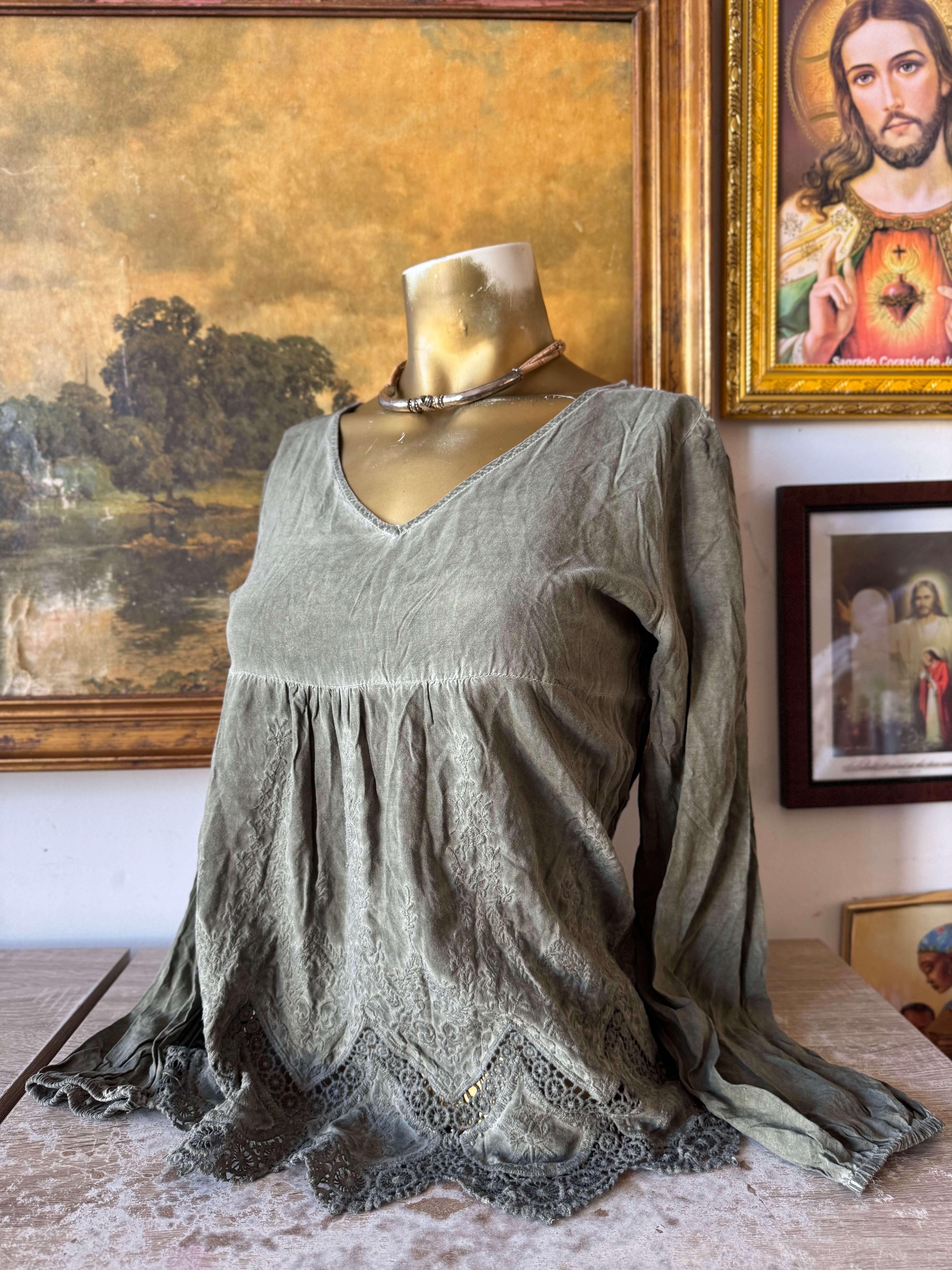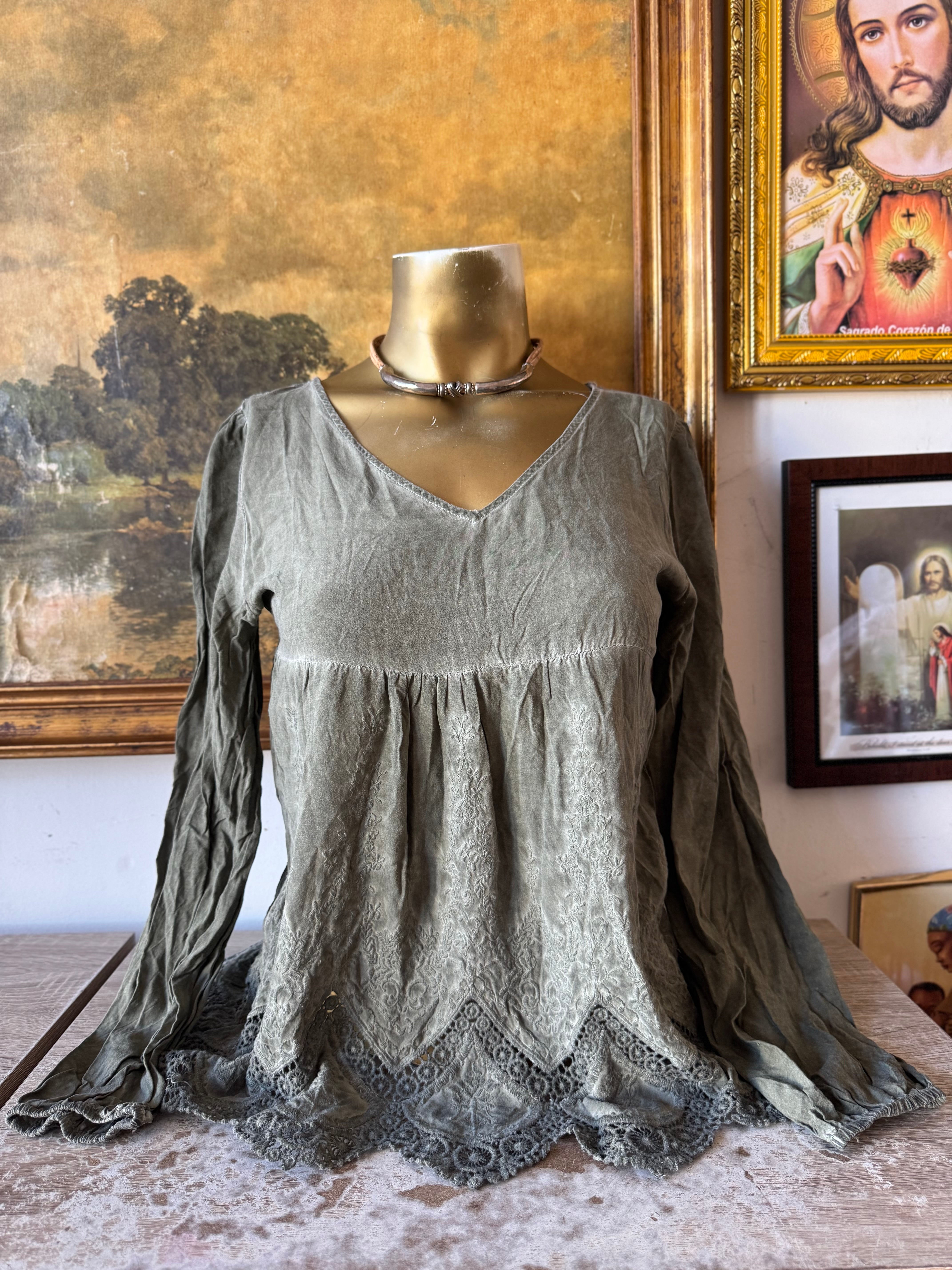 Altar'd State Green Boho Long Sleeve Top Size Small