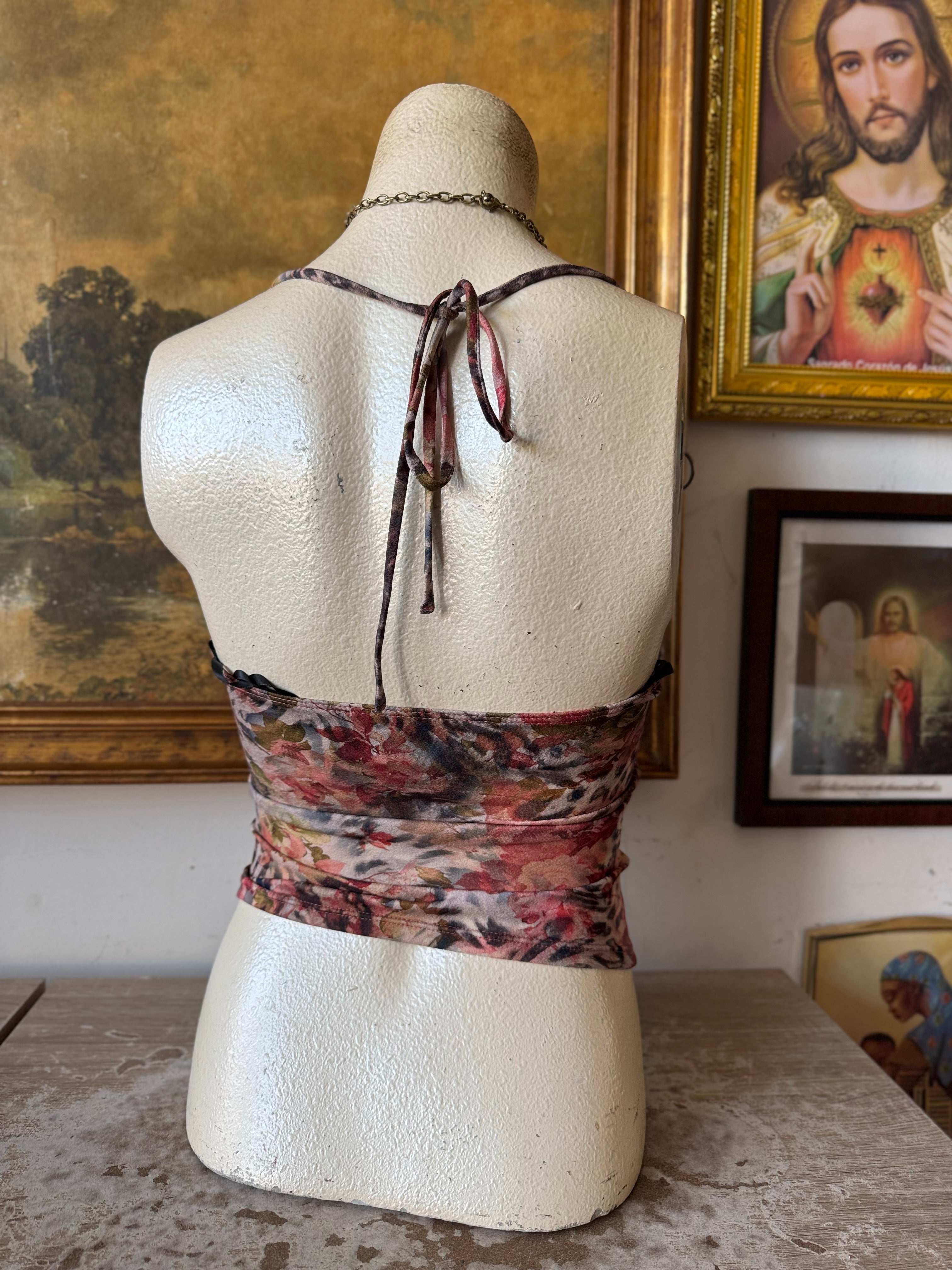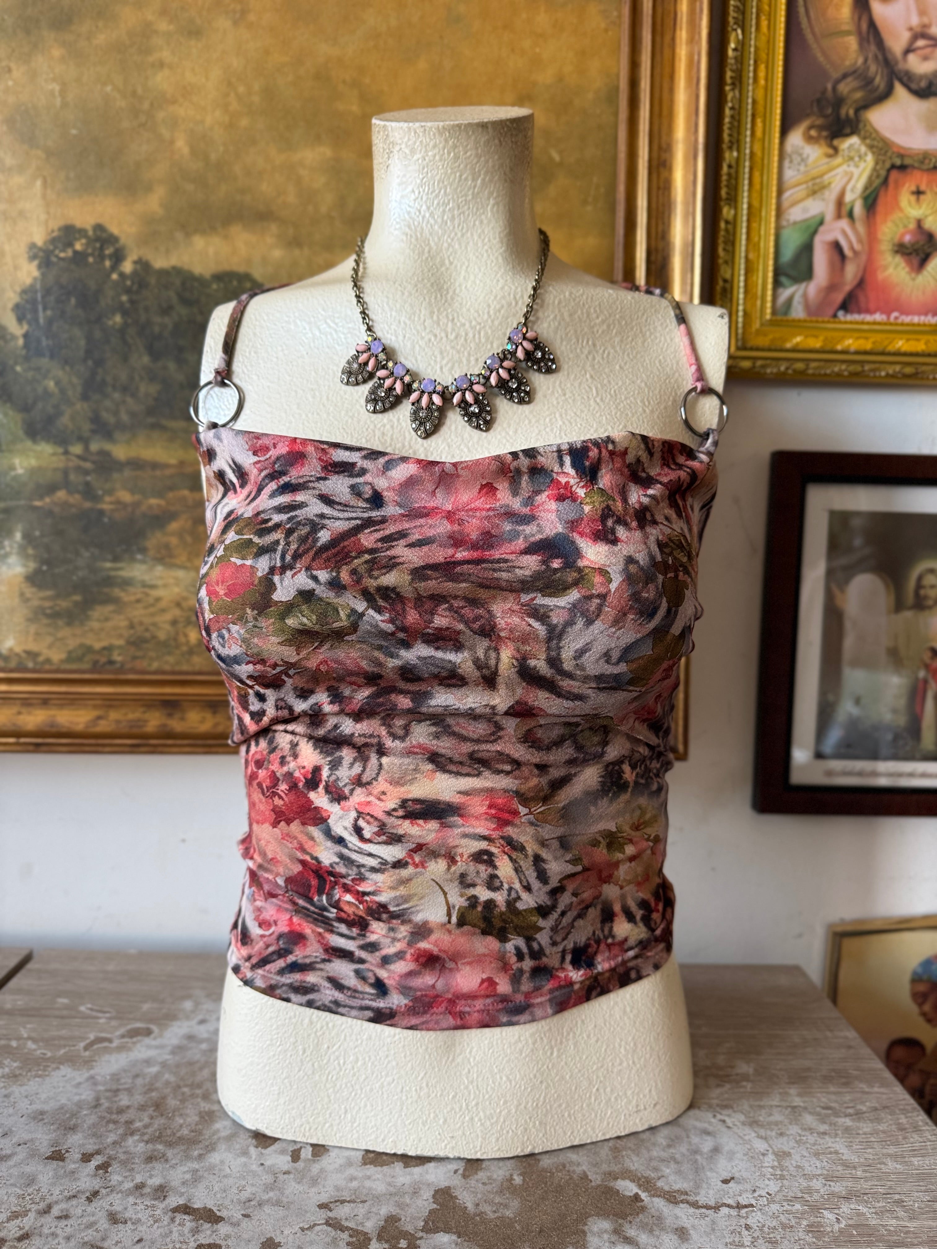 UO Leopard and Floral 0-Ring Crop Top Size XXS