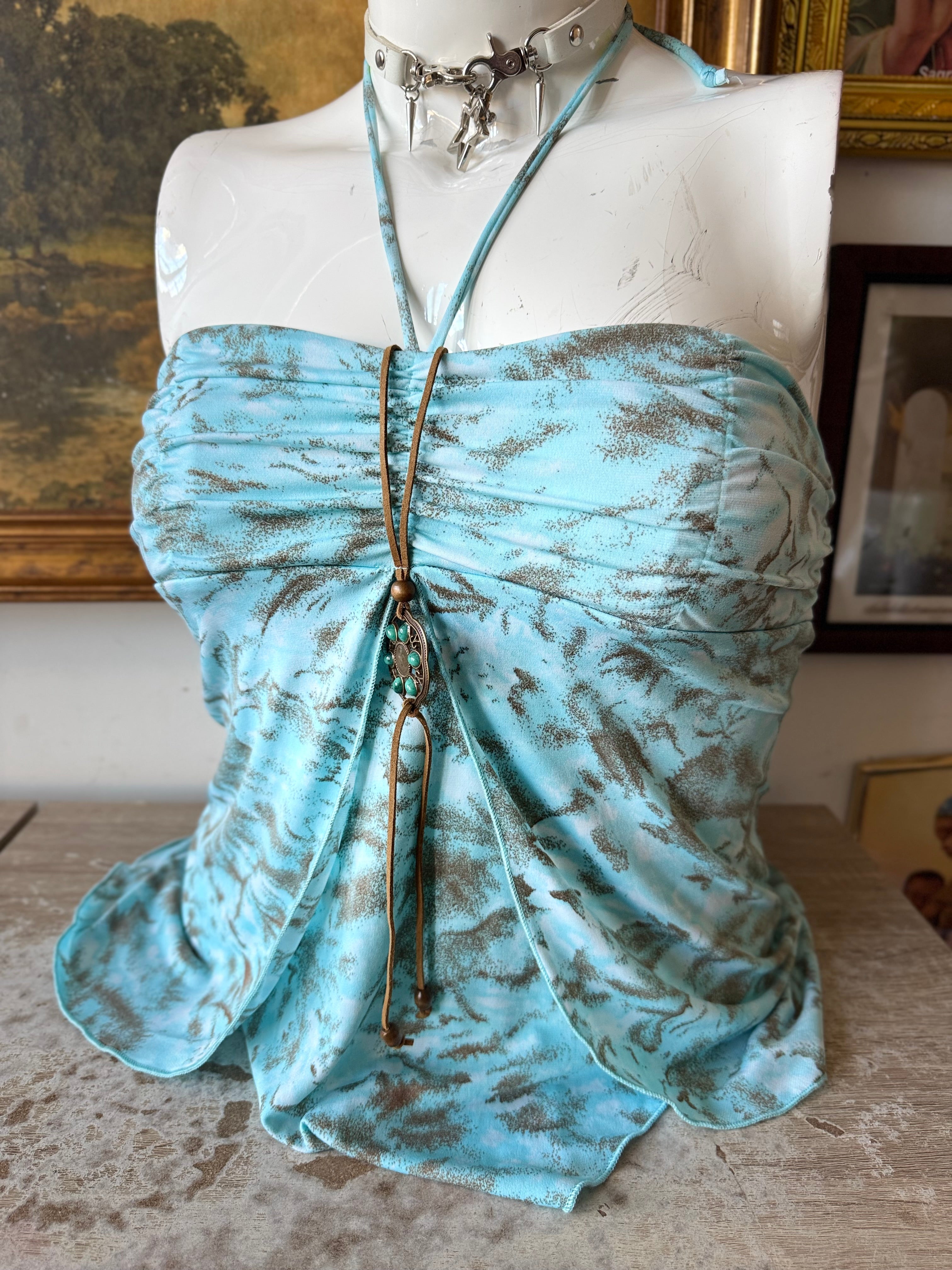 Y2K Vintage Blue and Brown Halter Top Size Large by Venus