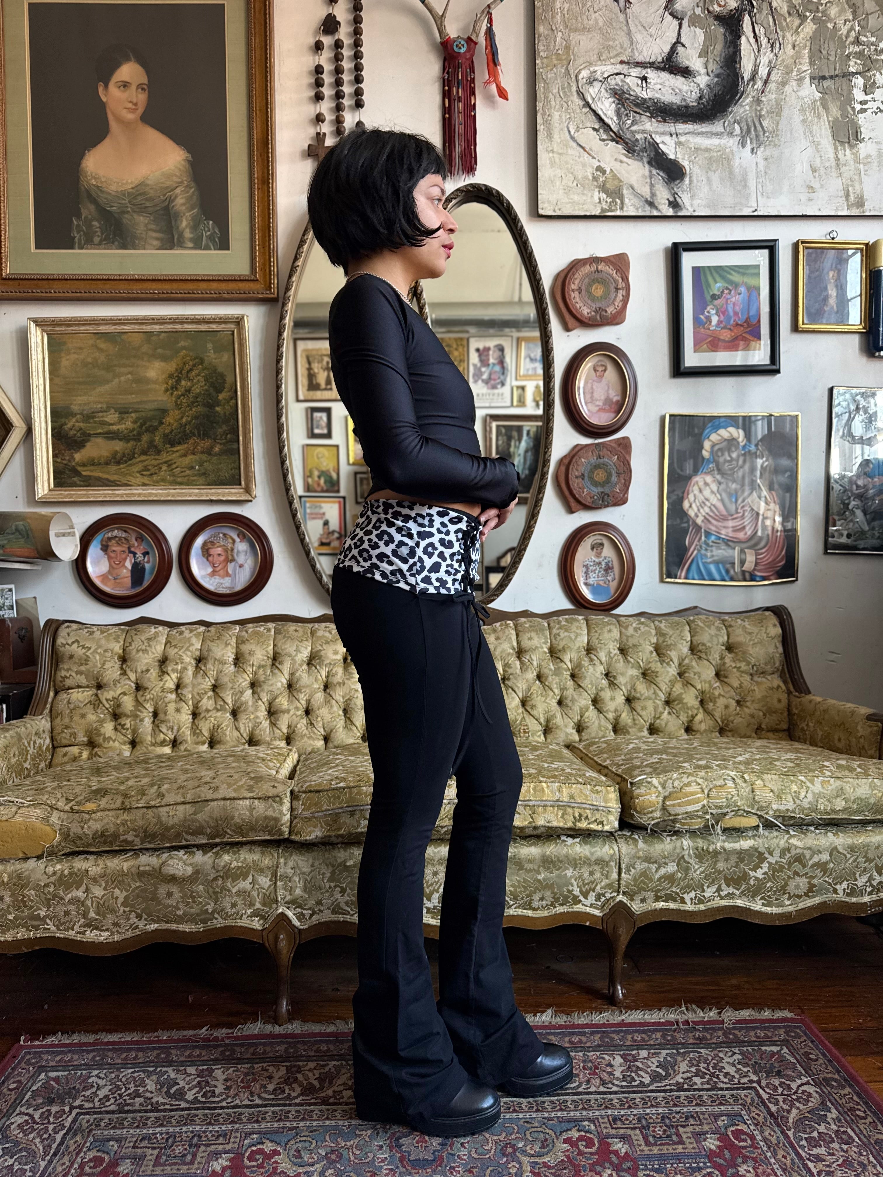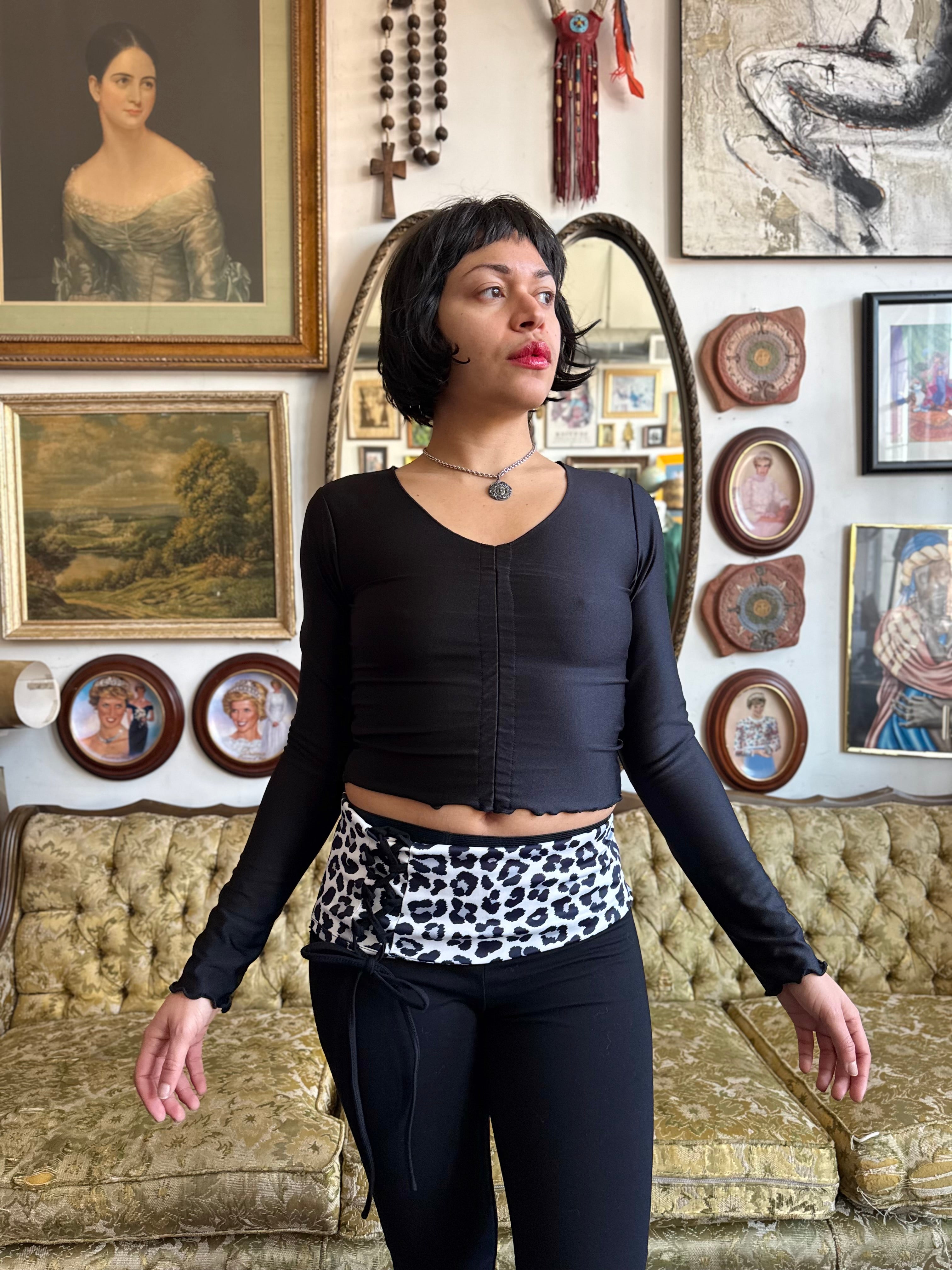 Black Long Sleeve V Neck Crop Top Size Small by Elastica