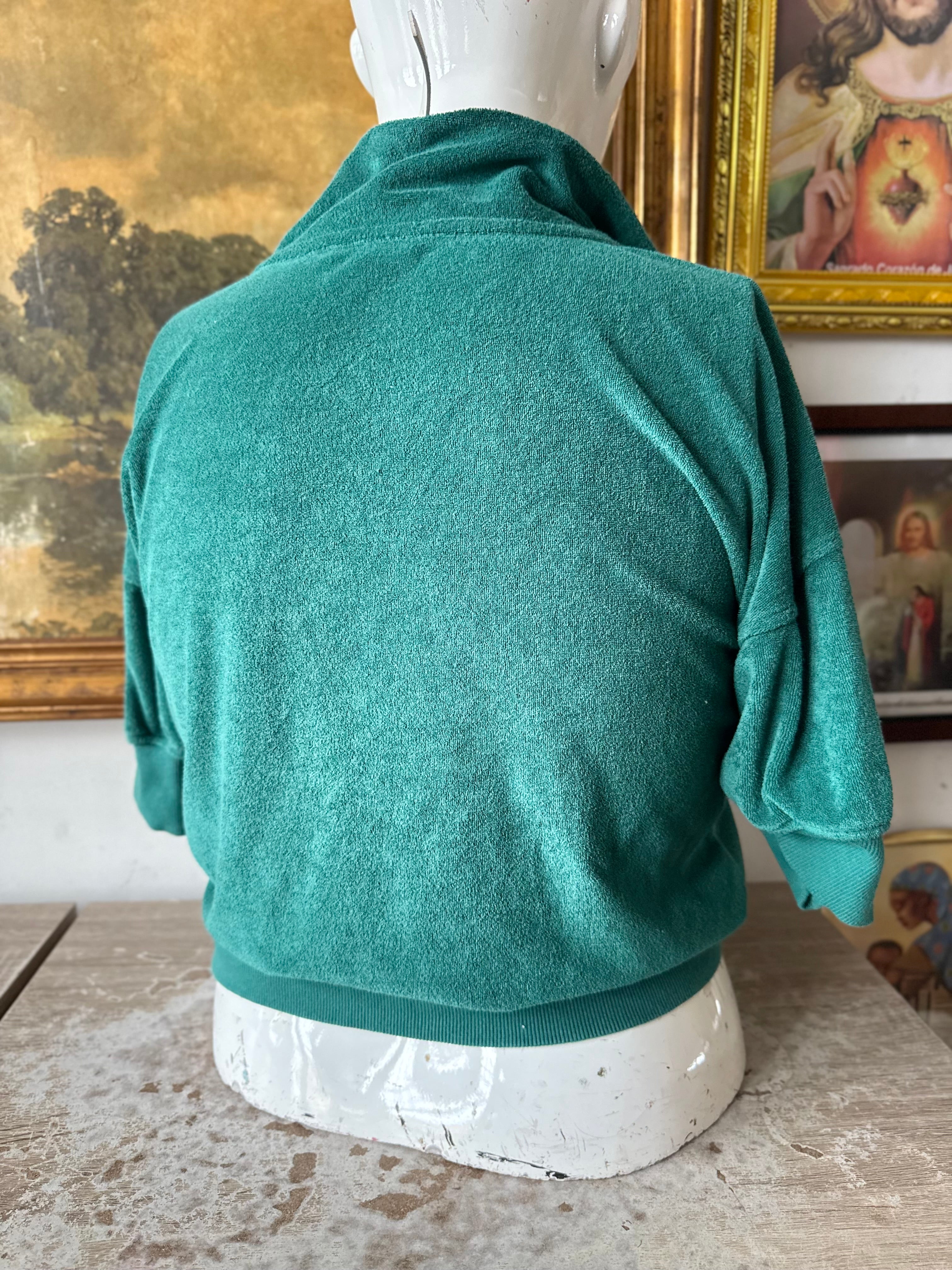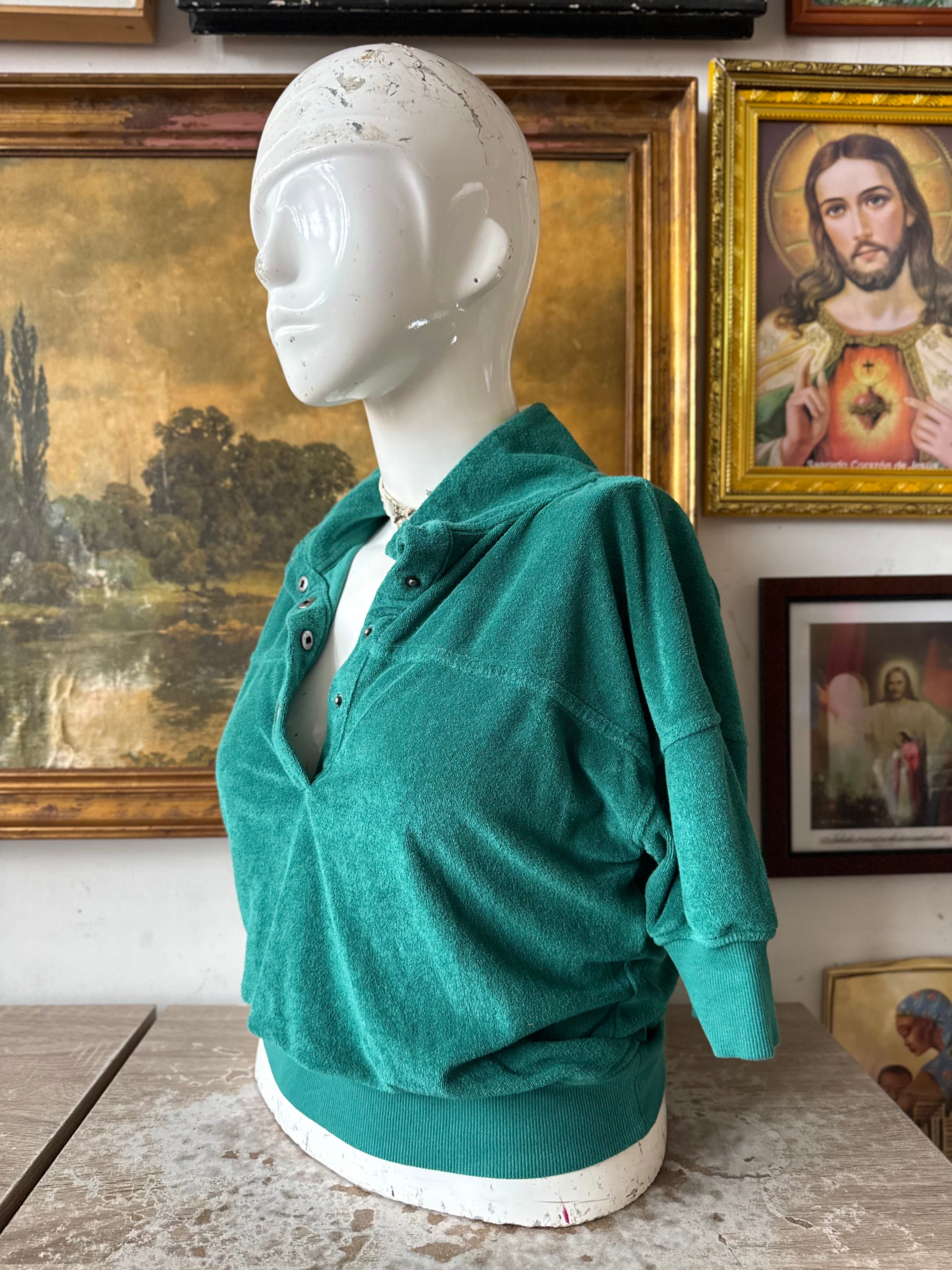 EVEREVE Green Velour Snap Button Green Top Ladies Small