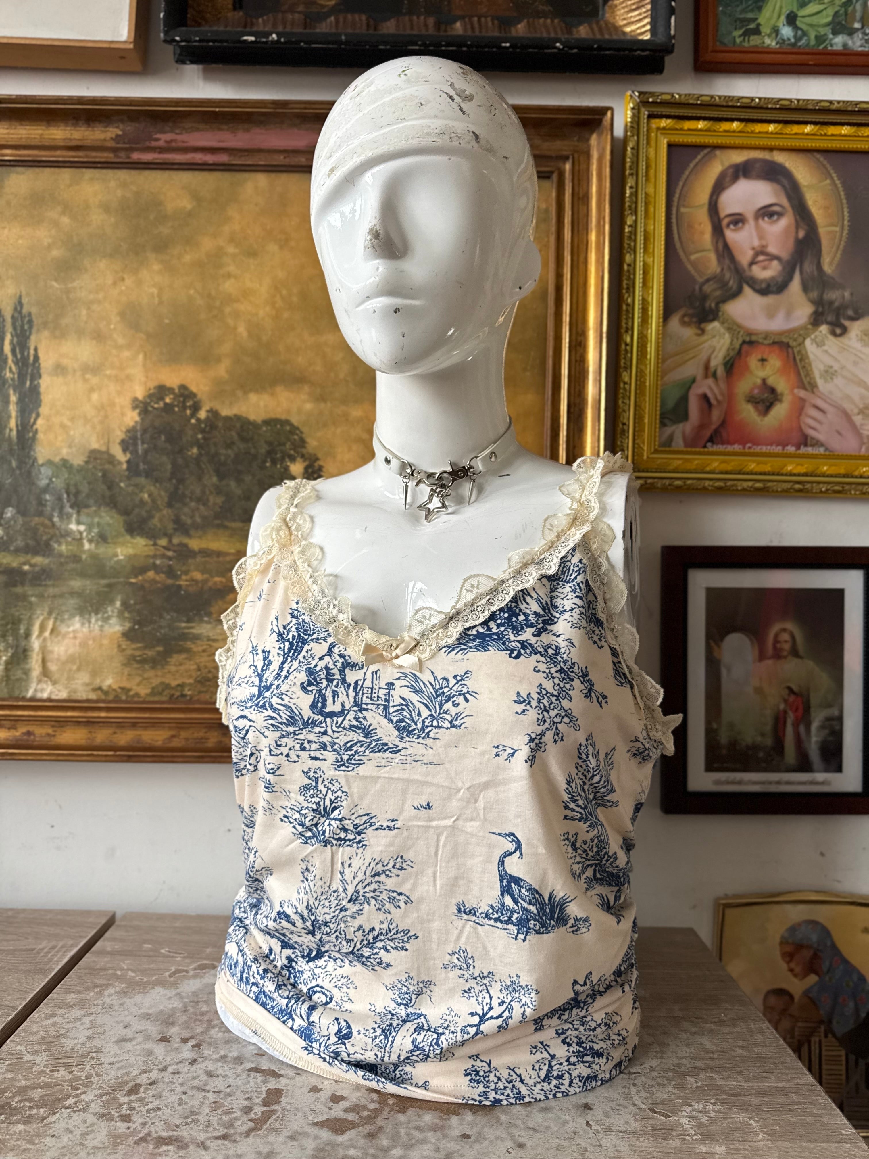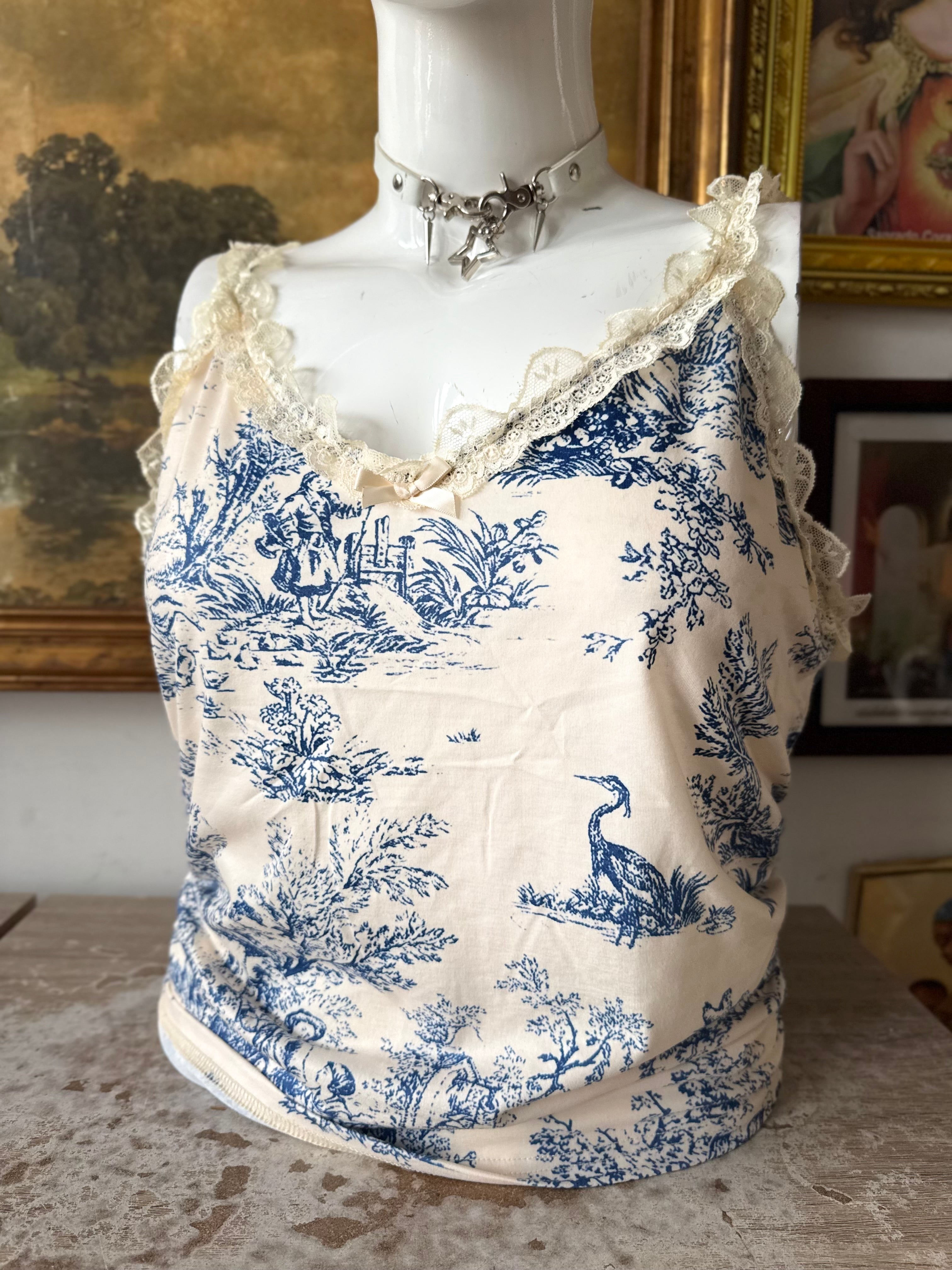 Creme and Blue Porcelain Lace Trim Cami 3XL by CIDER