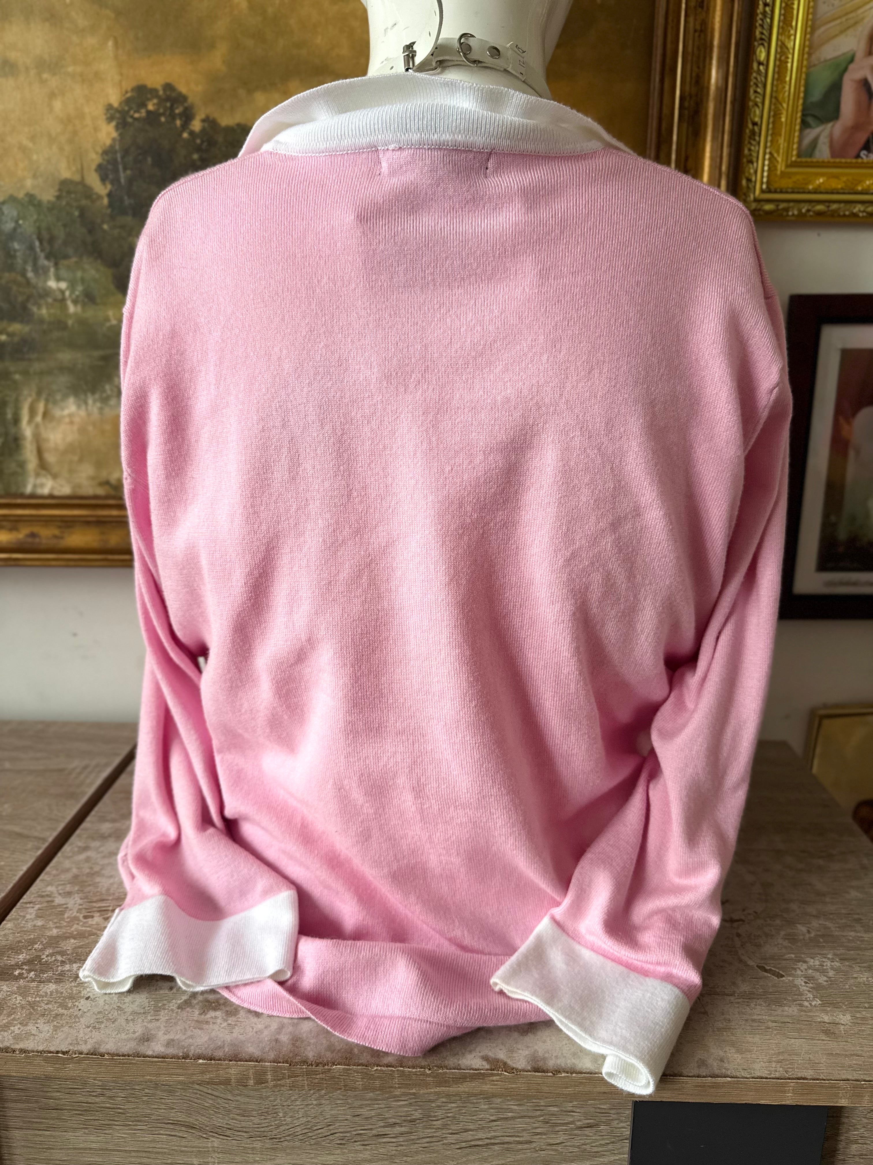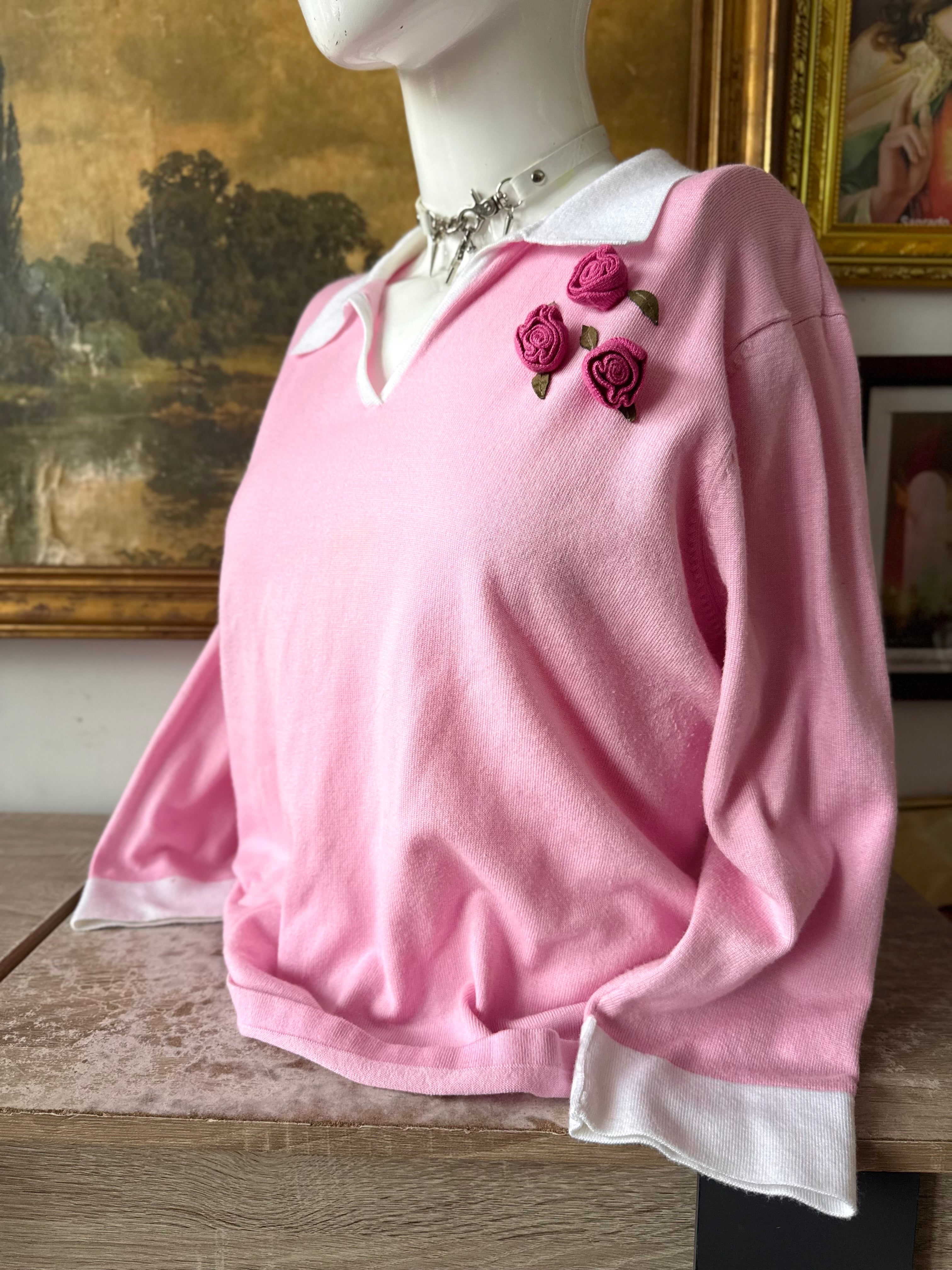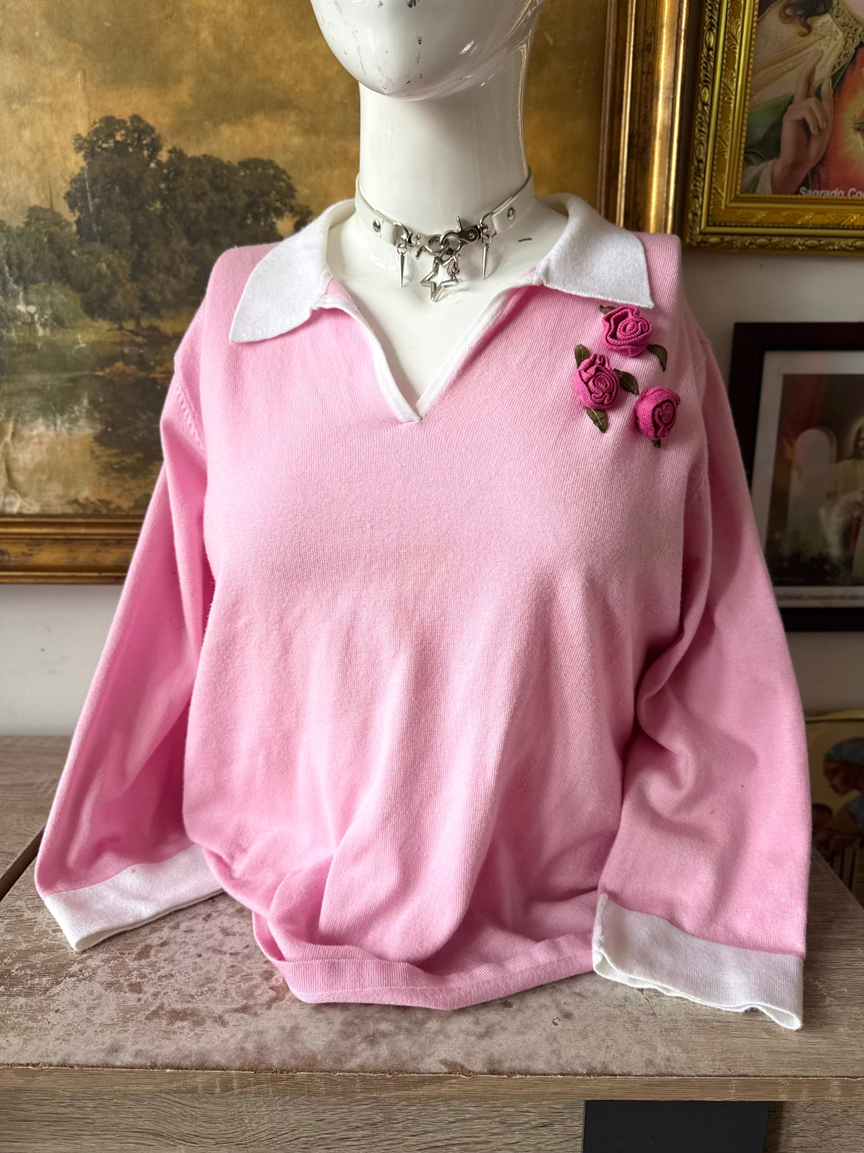 Knit Pink Floral Embellished Collared Sweater Ladies IX