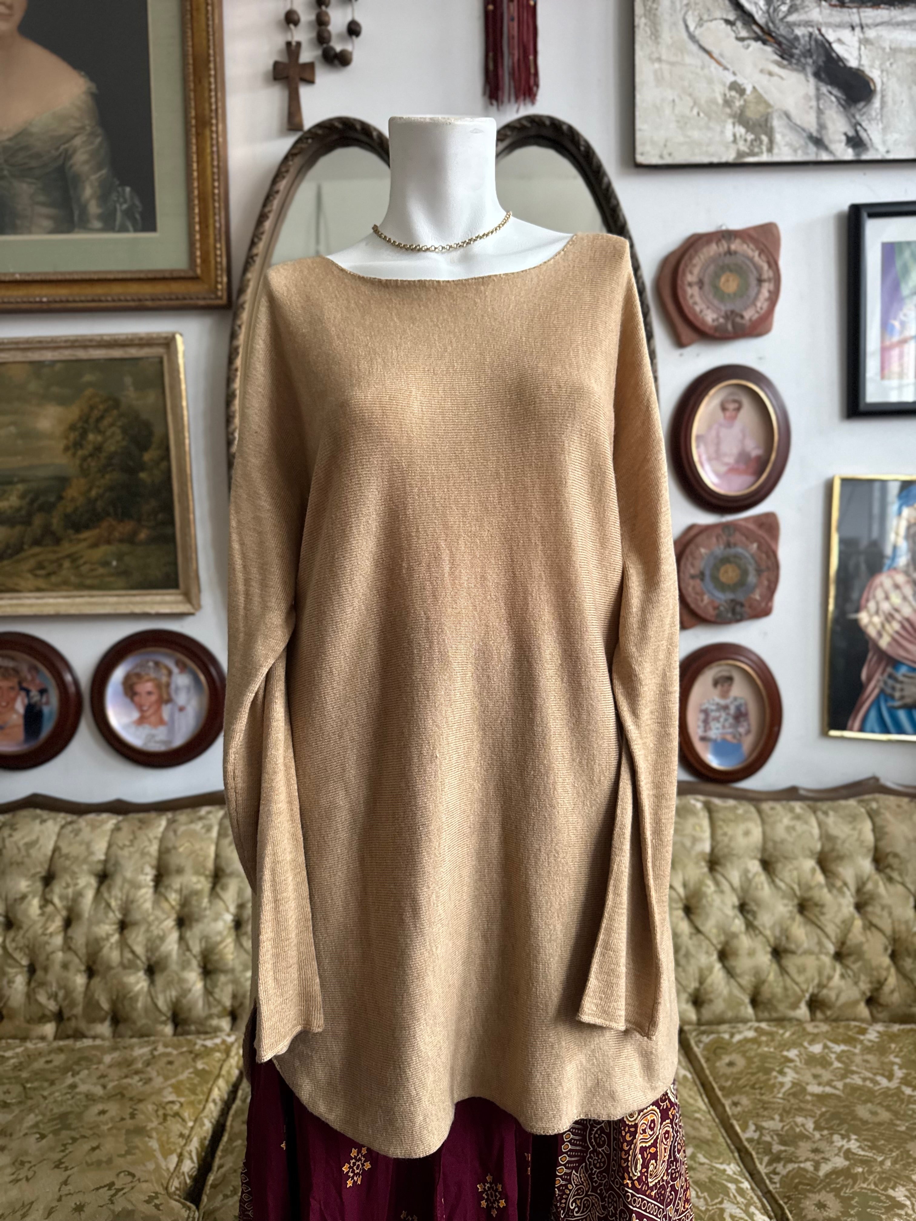 2000s Tan Wool Blend Tunic Sweater Size Medium by I.N.C