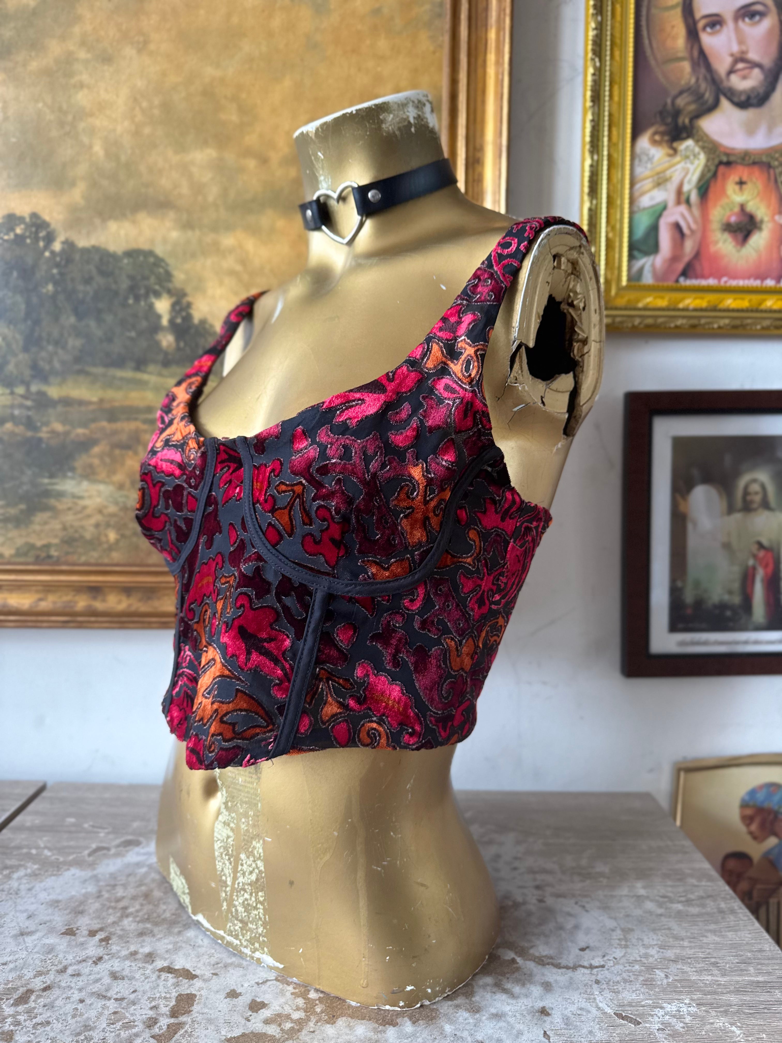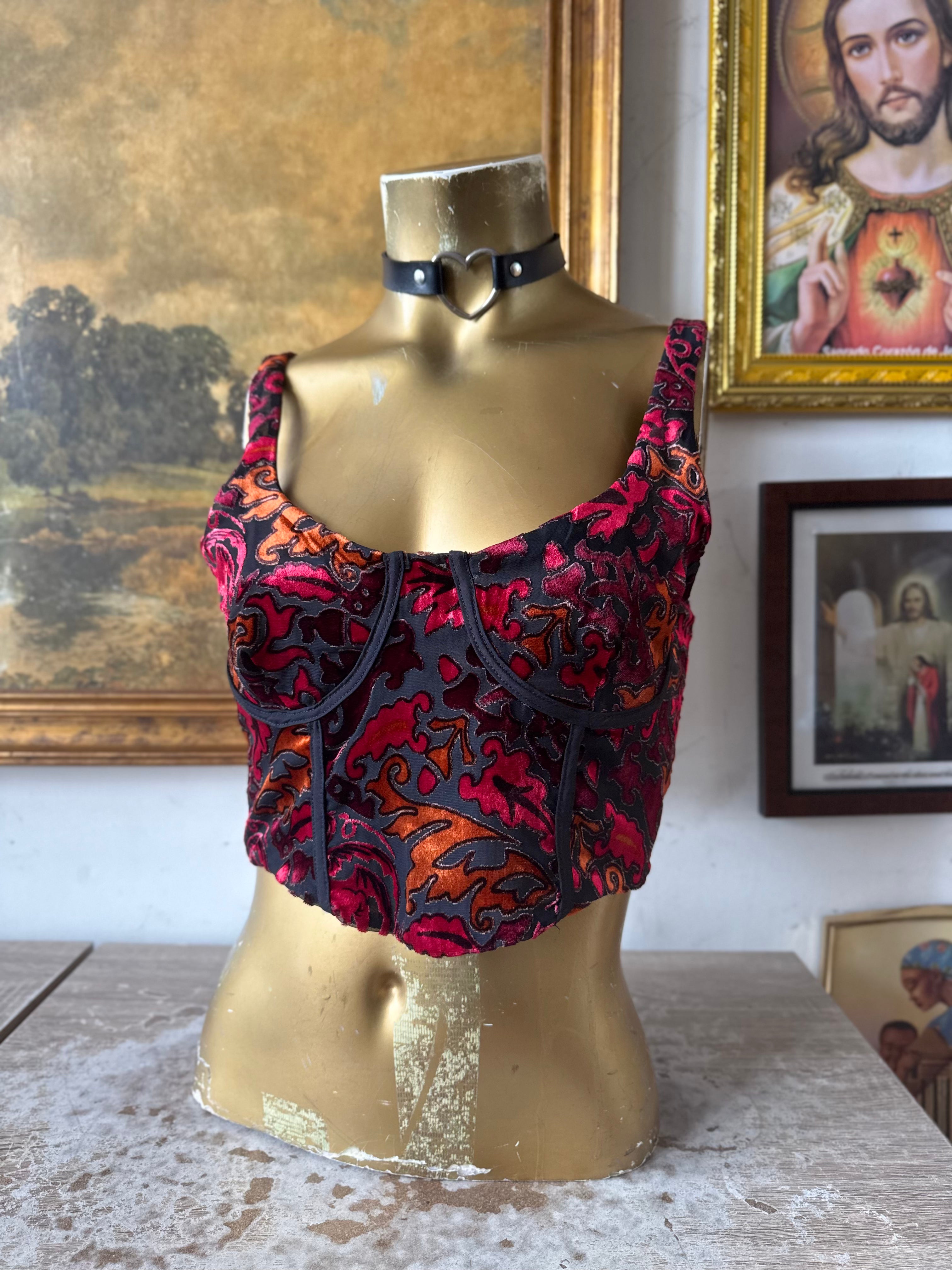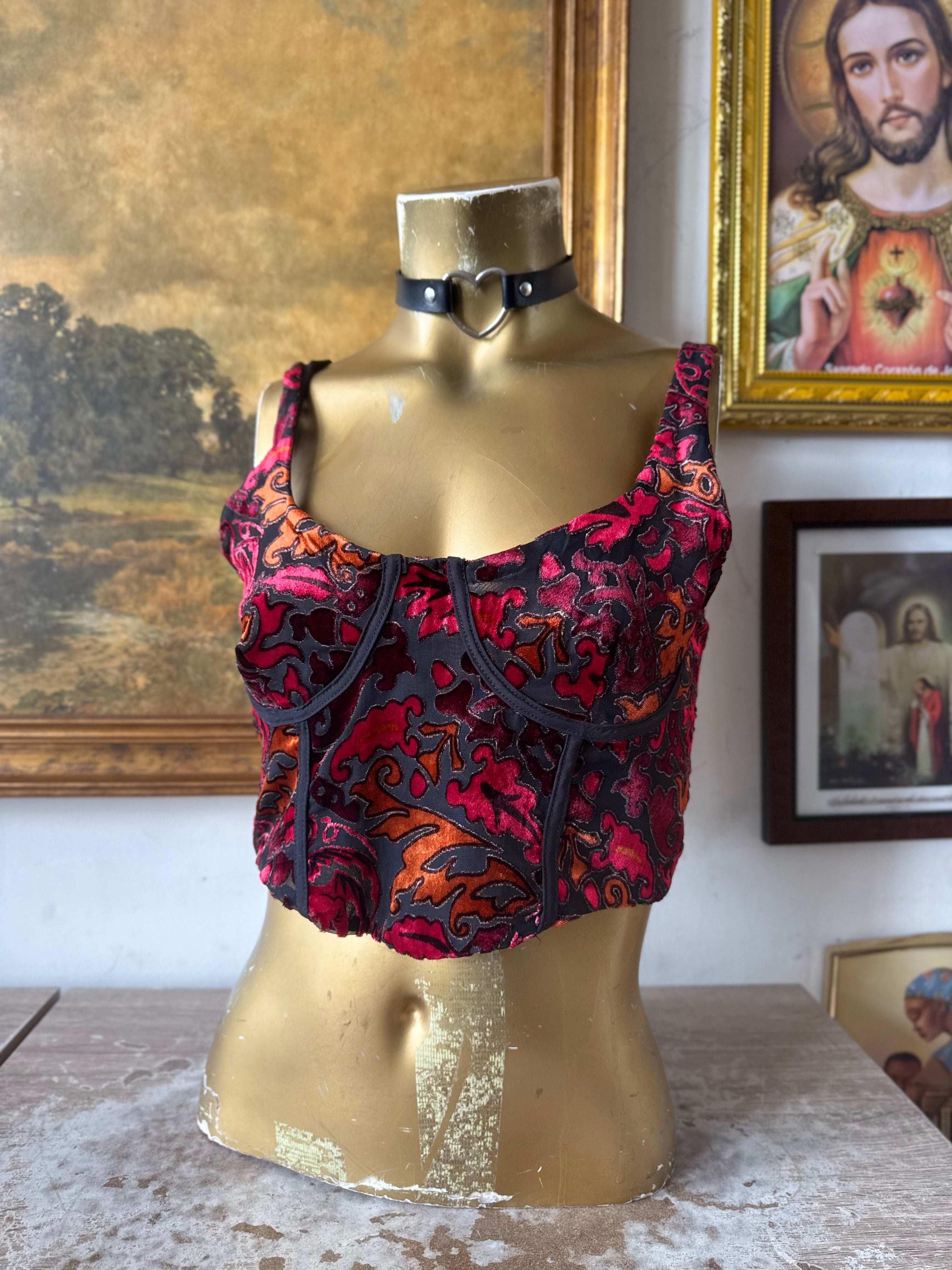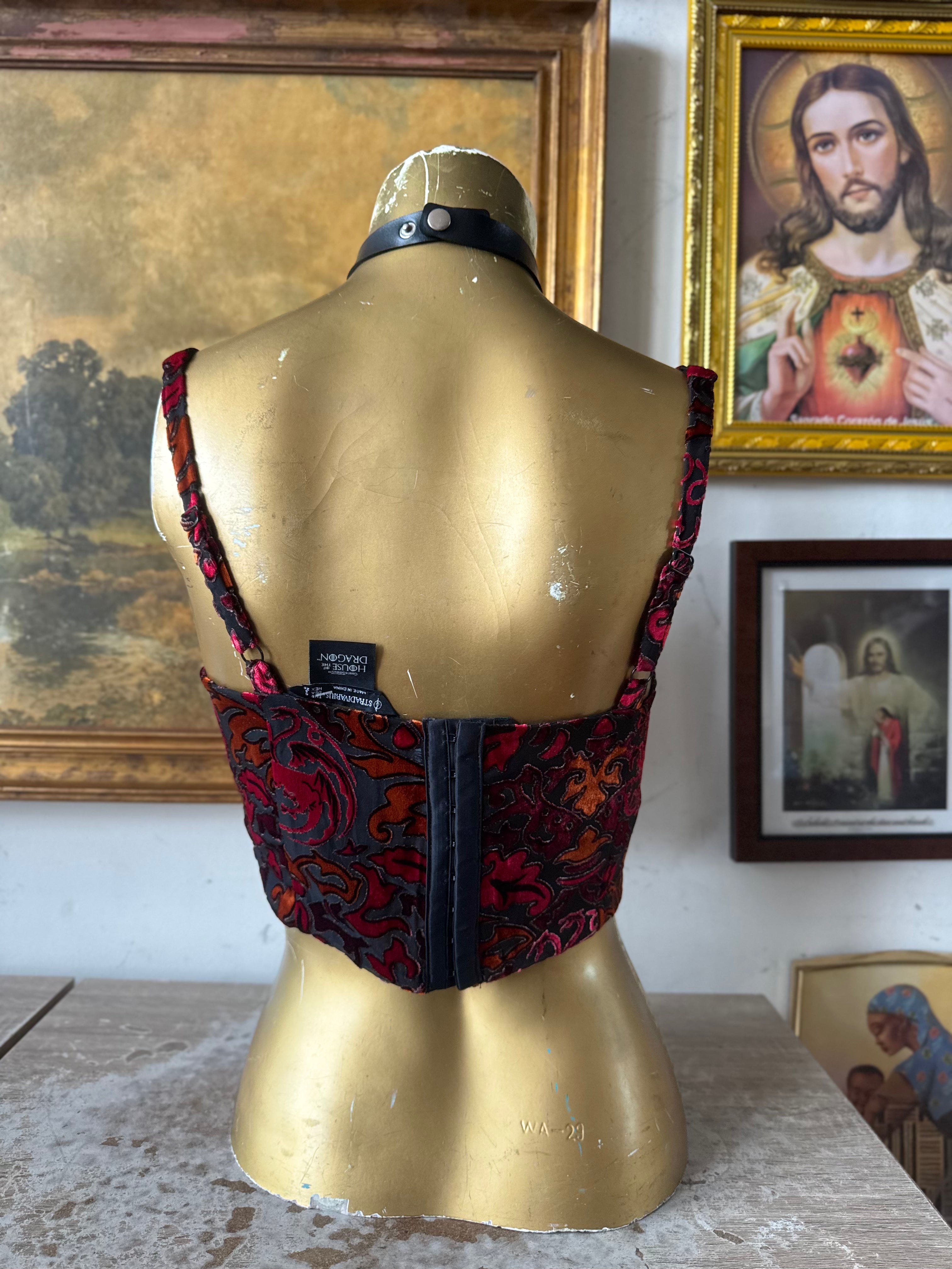 Description: Stradivarius Game Of Thrones Bustier Burnt Velvet Top