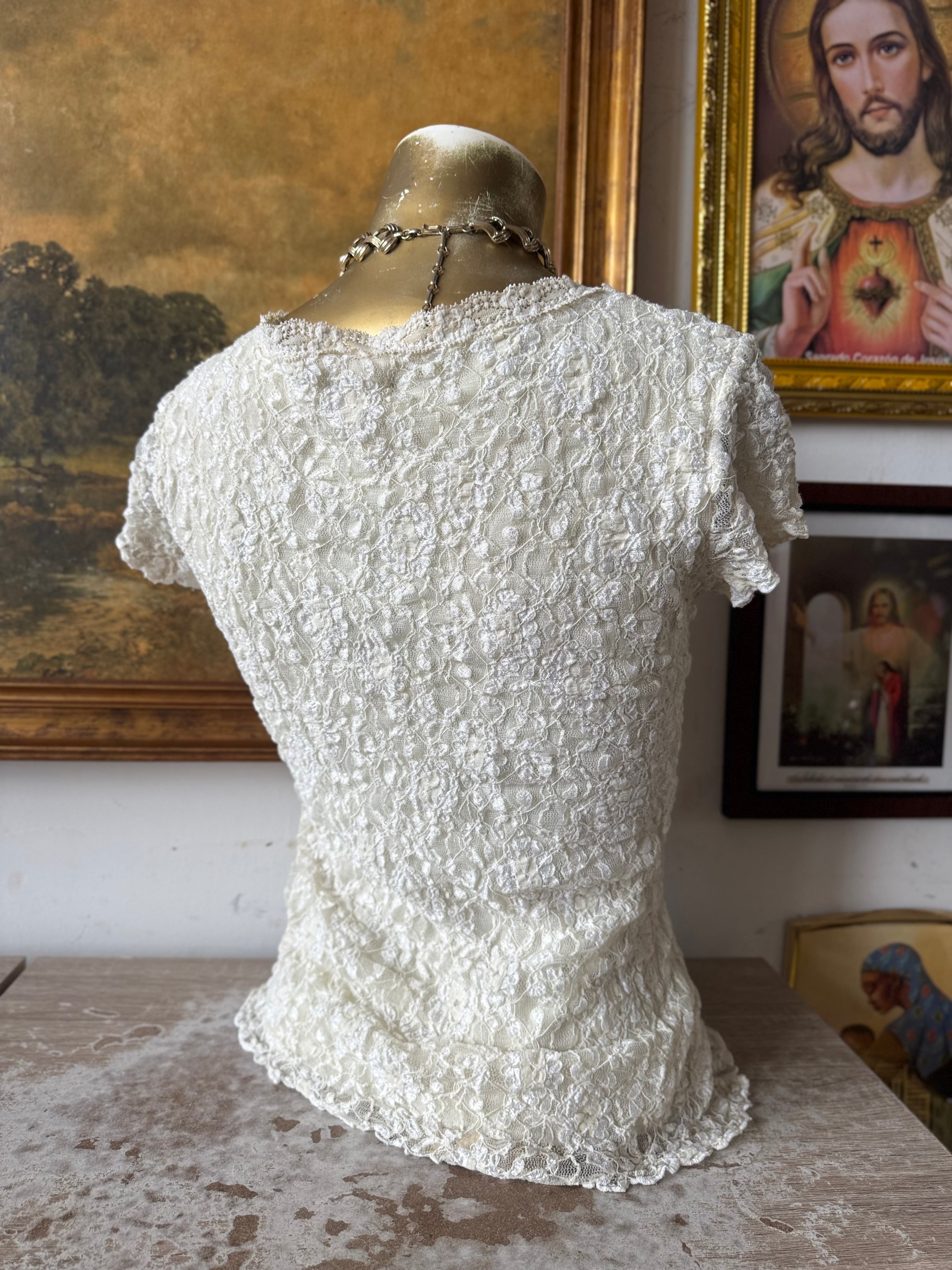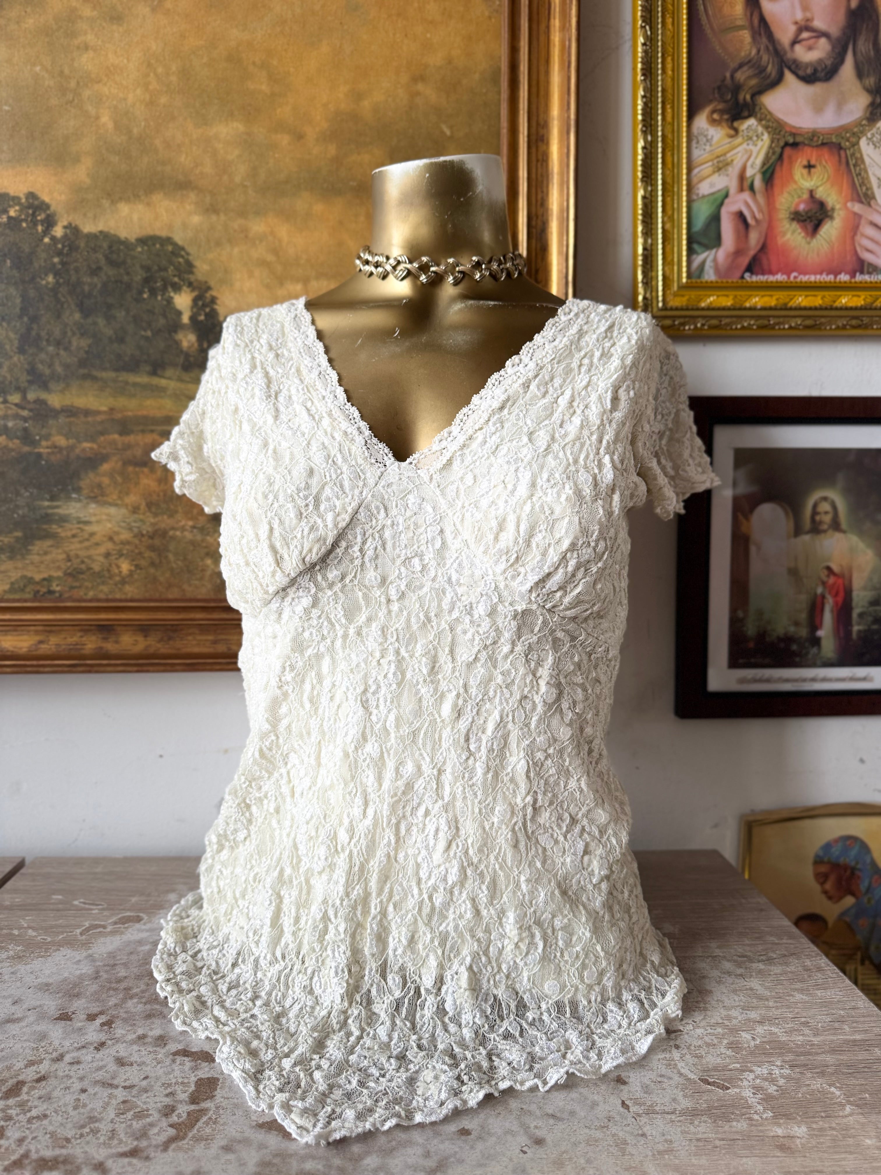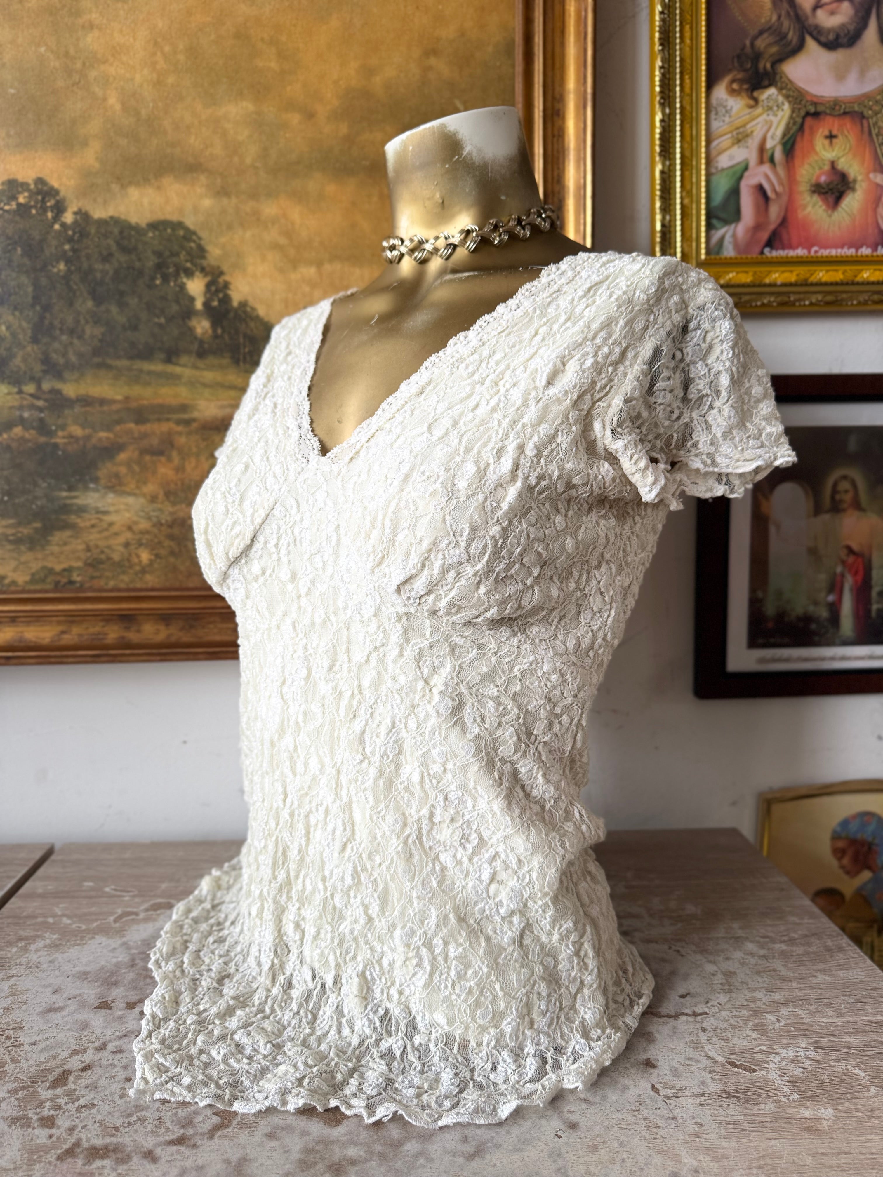 Y2K Lace Asymmetrical Milk Made Top Size Medium