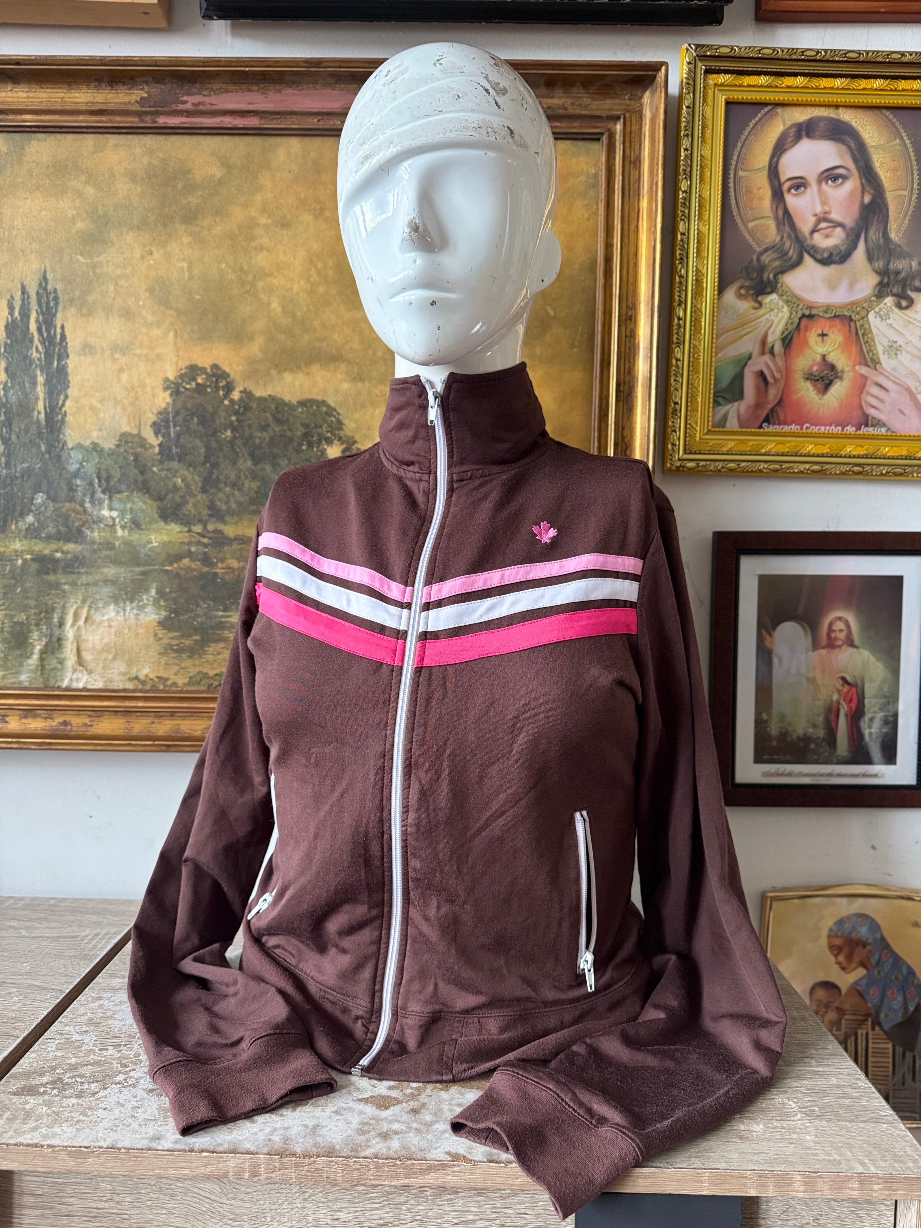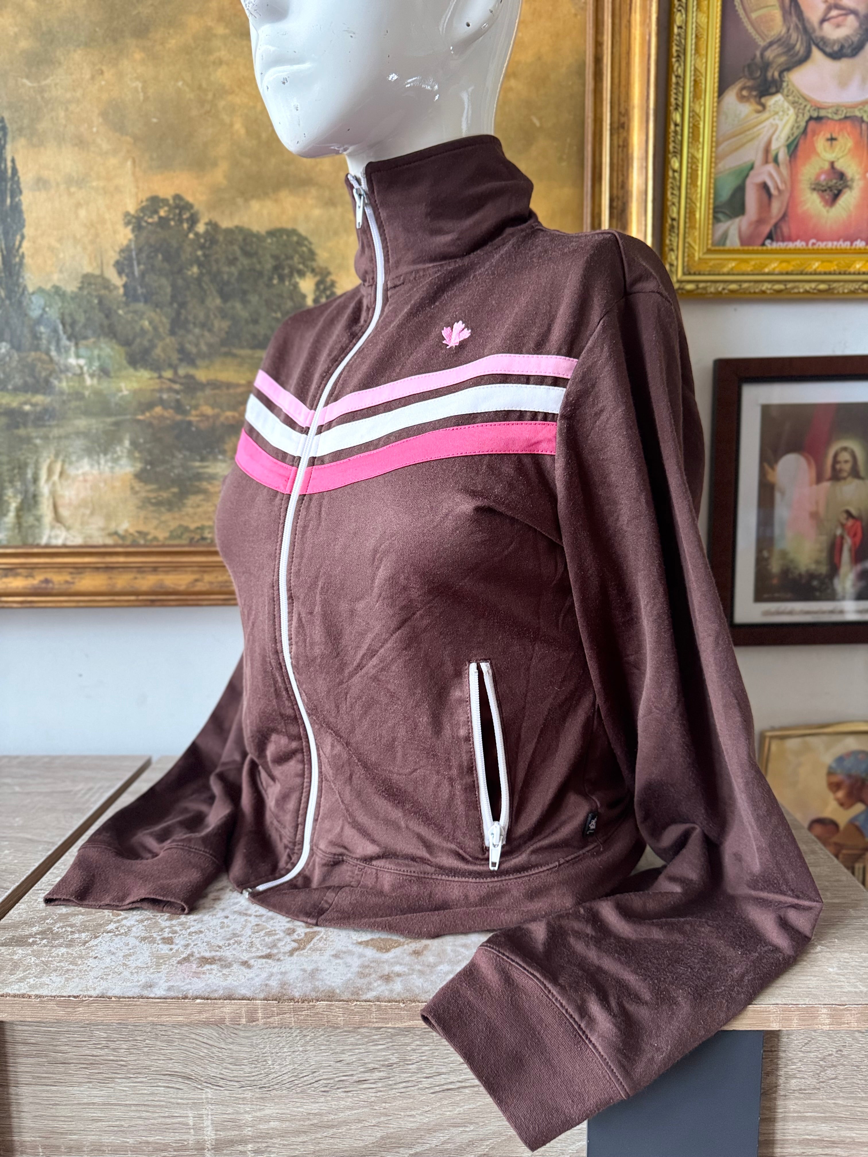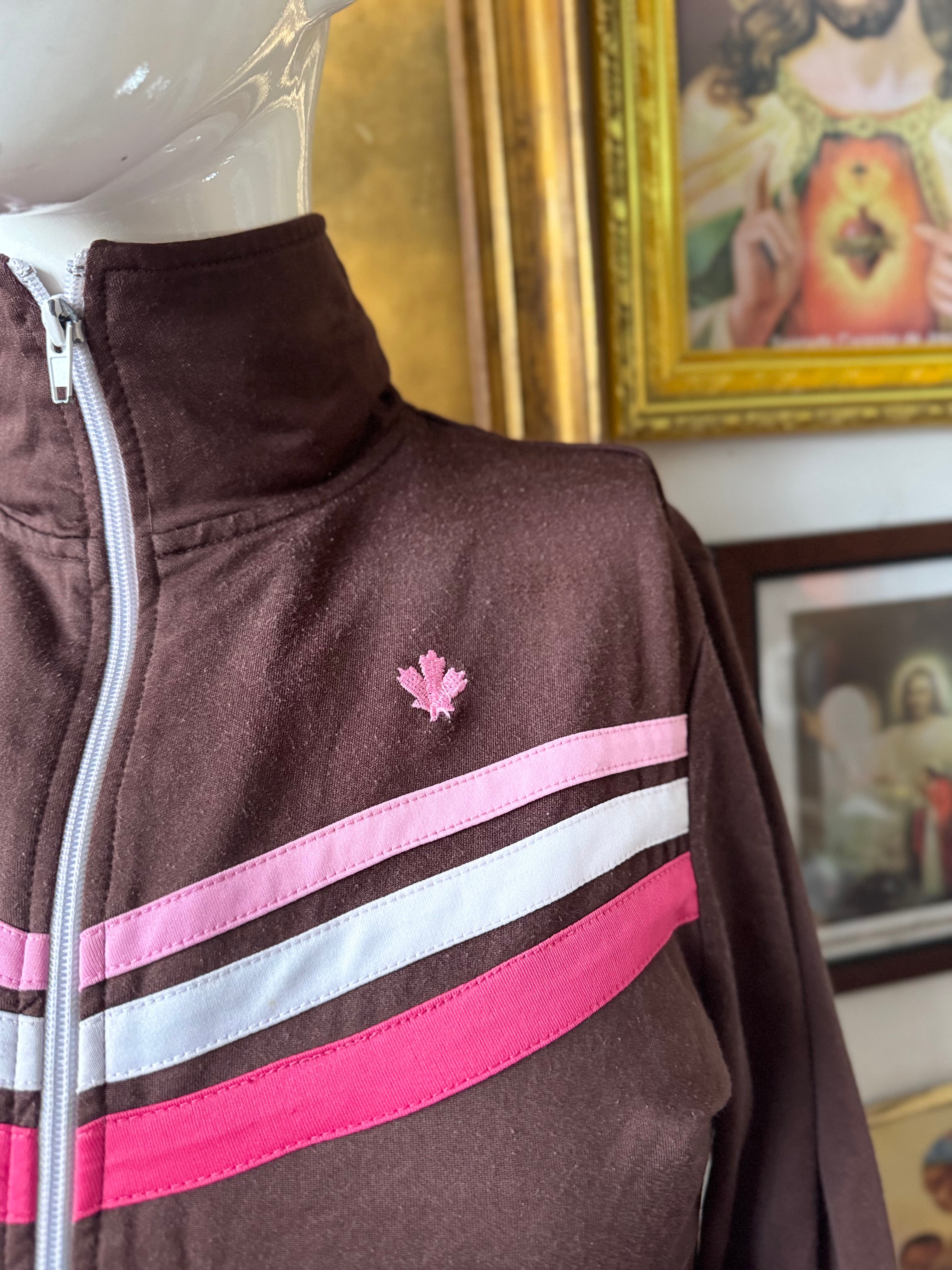 Y2K Brown and Pink Varsity Zip Up by LA Kitty Ladies XL by W&W