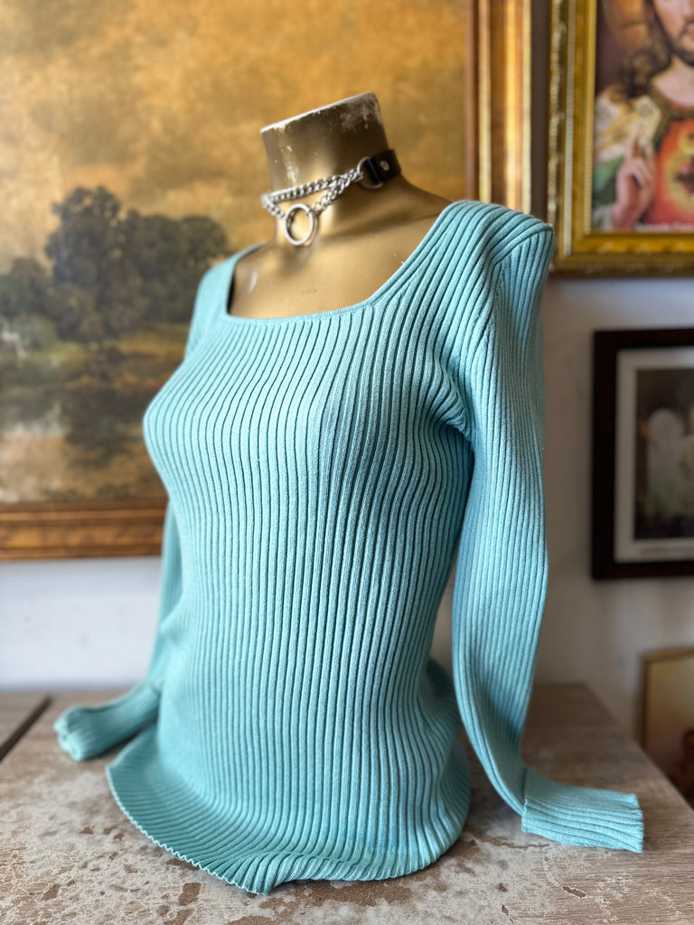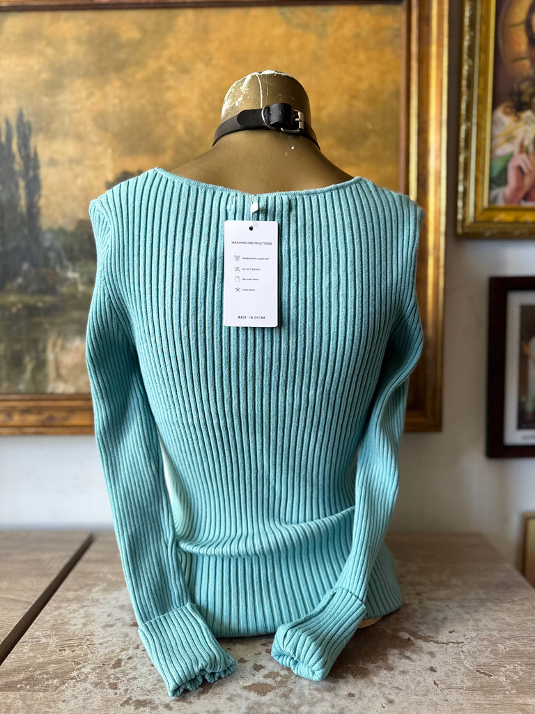 NWT Blue Vibrant Ribbed Long Sleeve Sweater Top Ladies Size Large