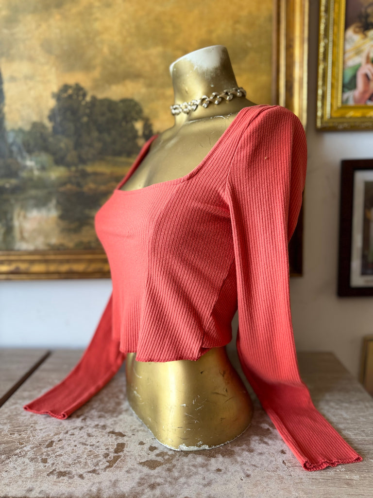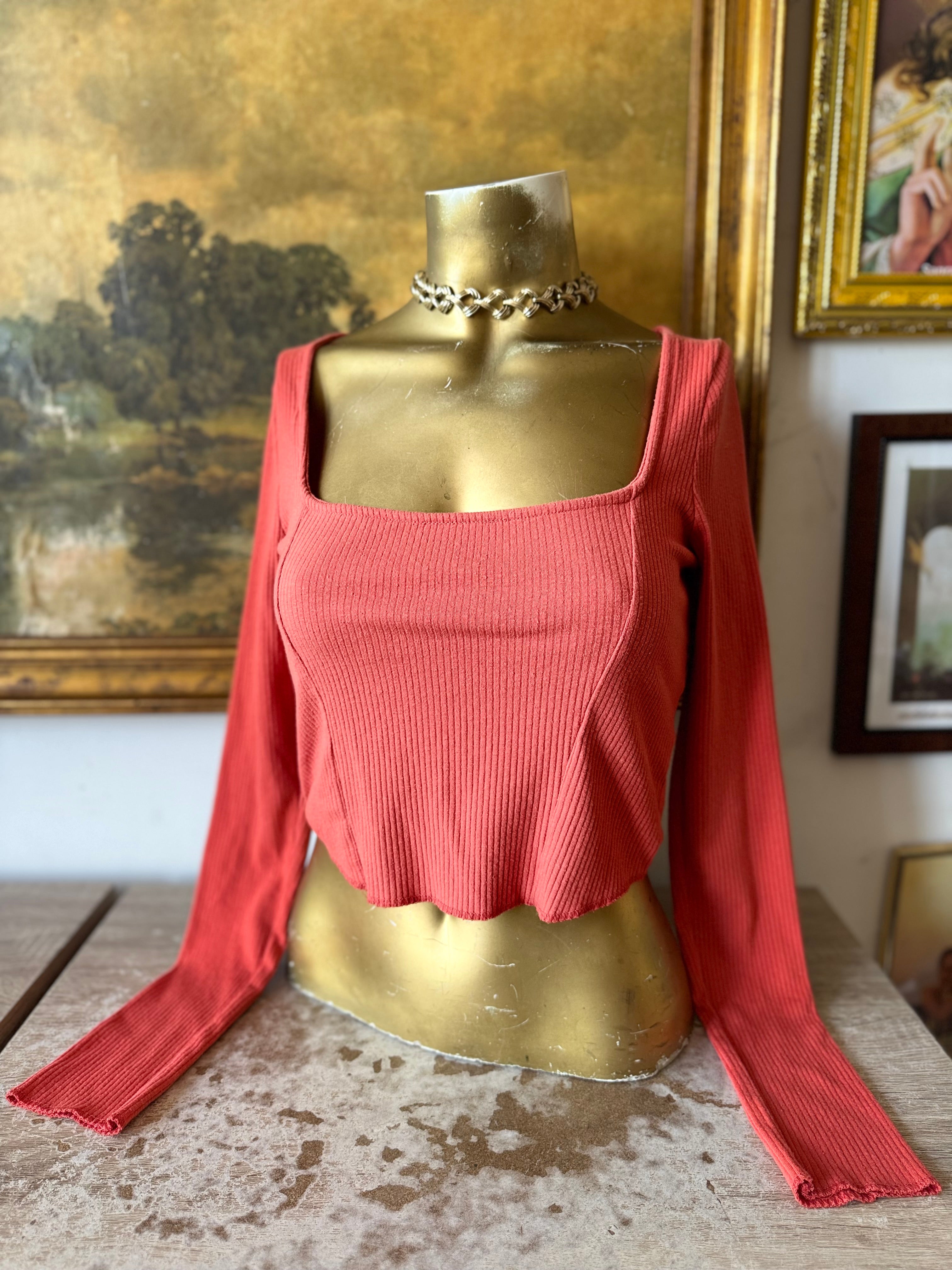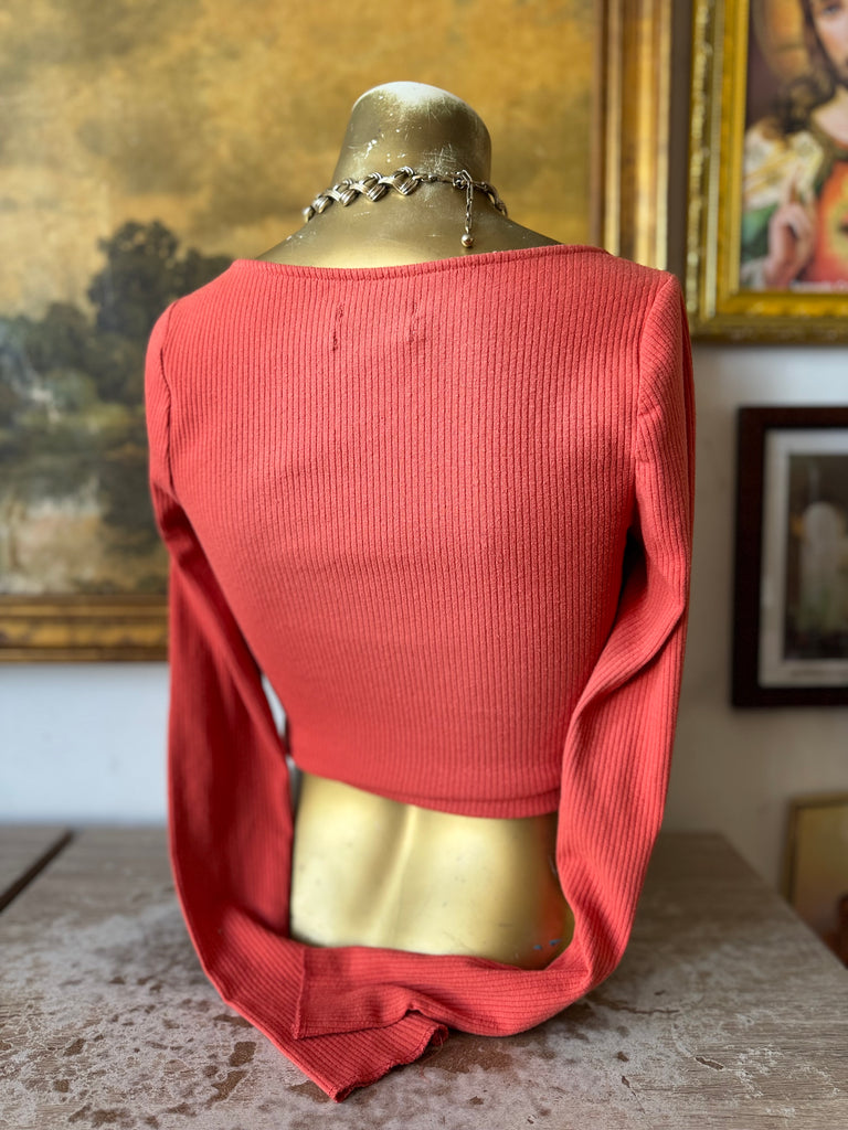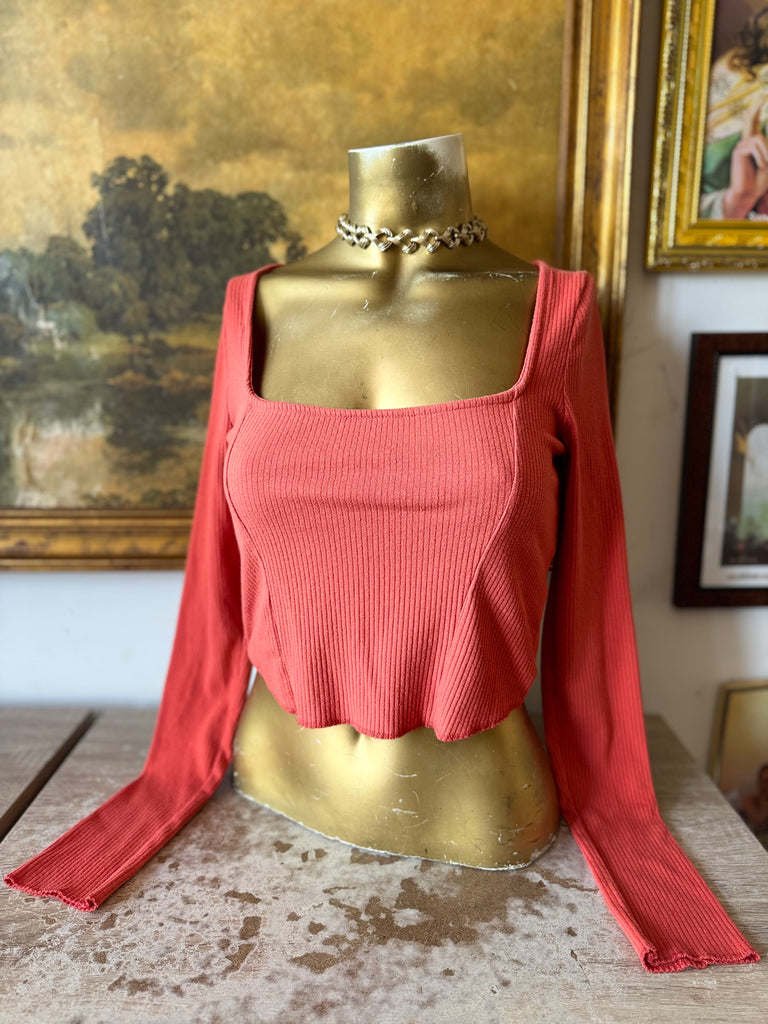 Urban Outfitters Pumpkin Ribbed Square Neck Long Sleeve Top Size M