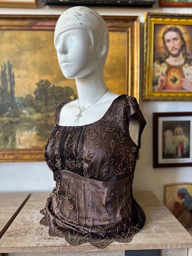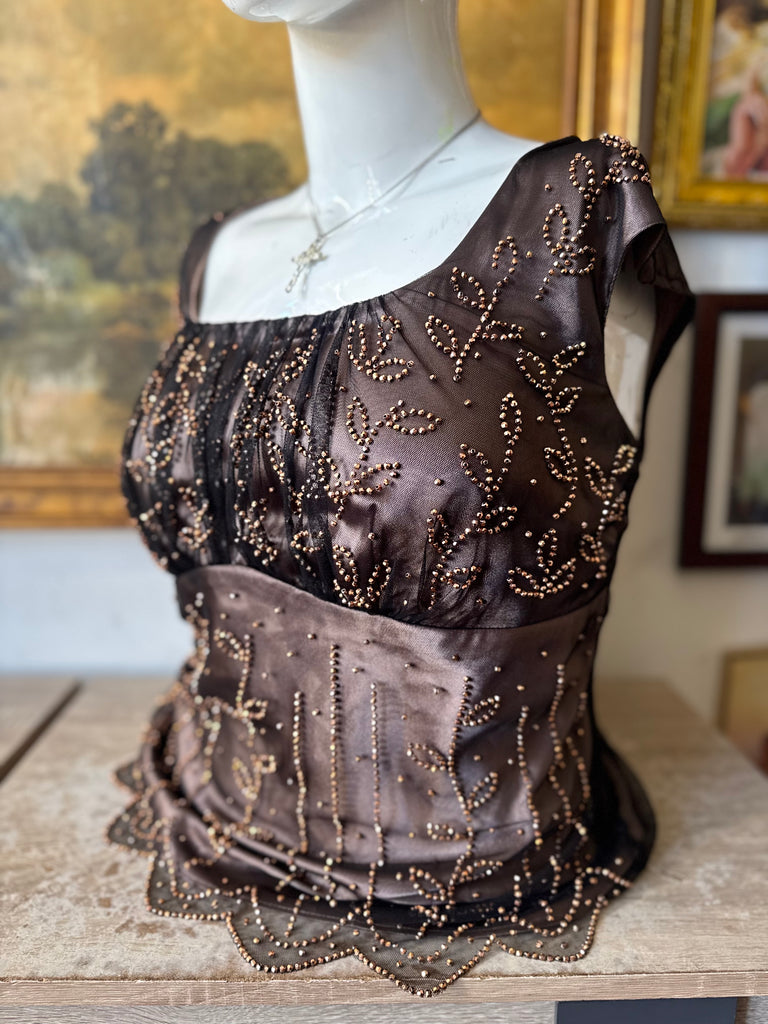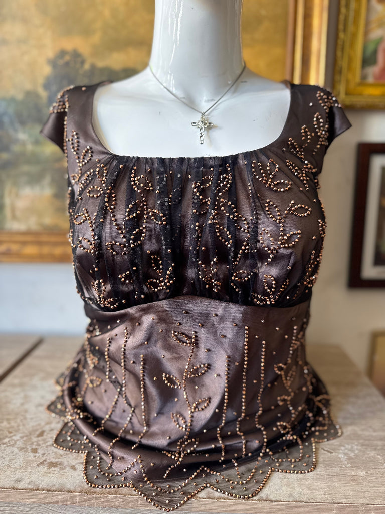 2000s Sequin and Lace Cap Sleeve Blouse Size 1X