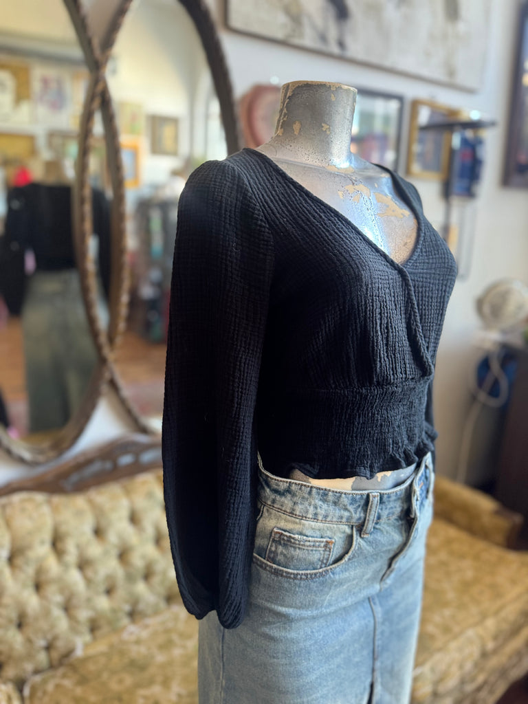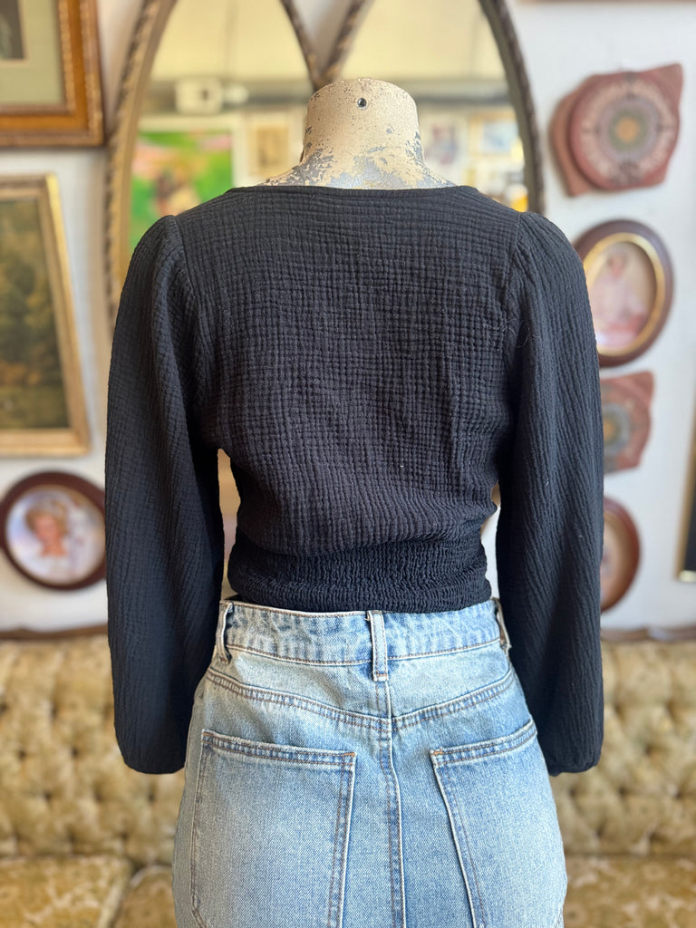 Black Julianne Smocked-Waist Top by Madewell Size Medium