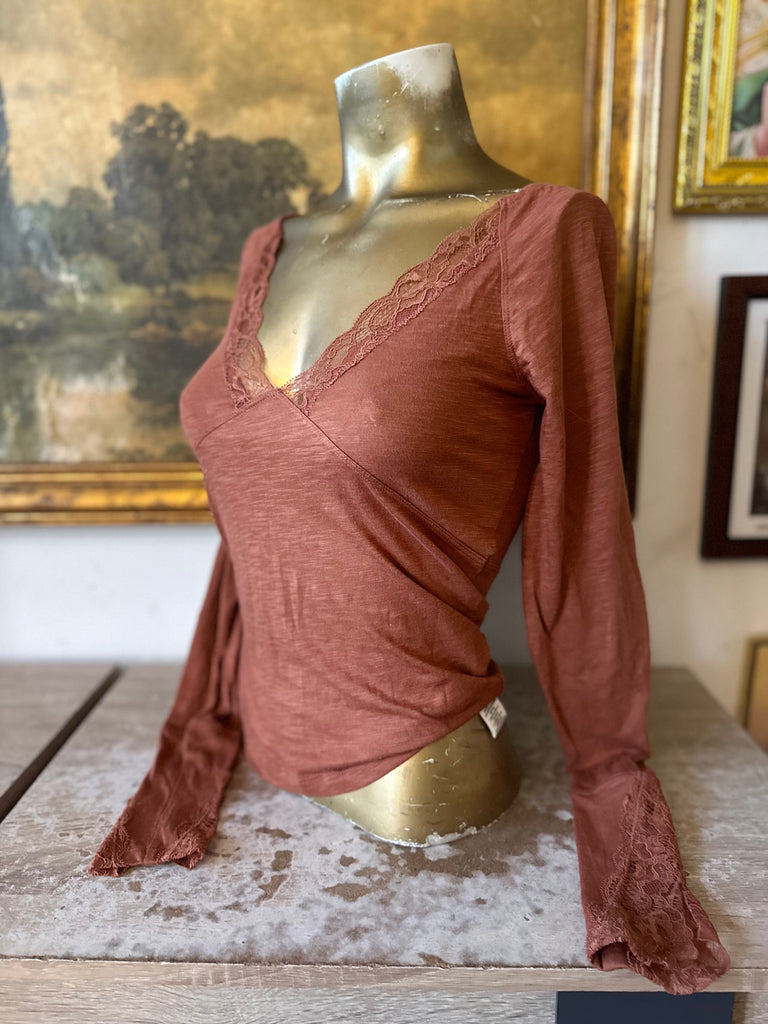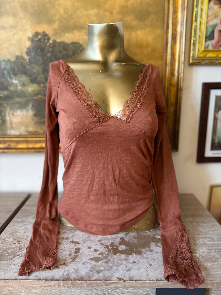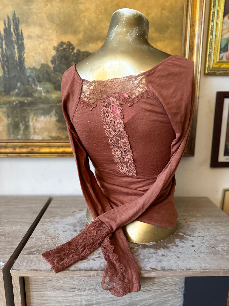 Description: Free People Rust Lace Trim Long Sleeve Size XS