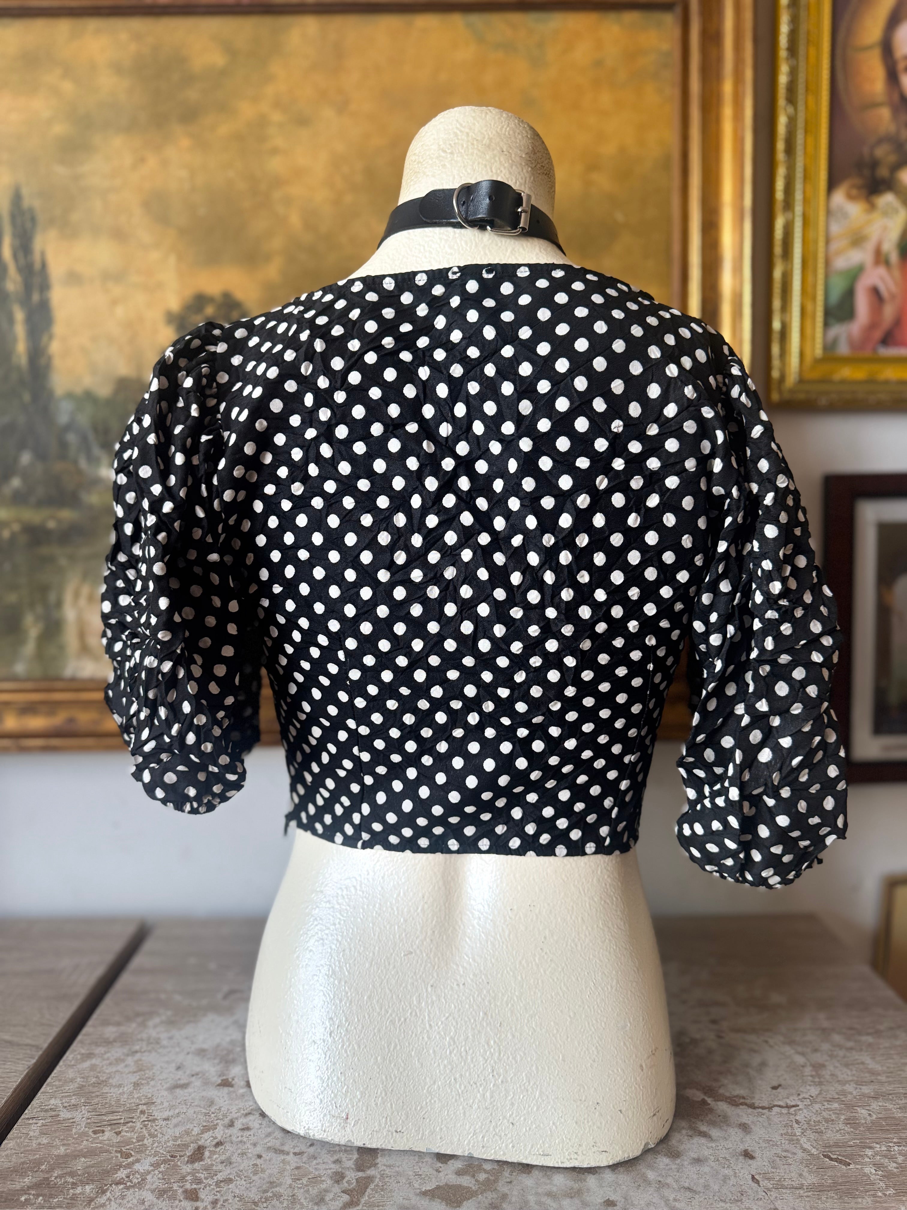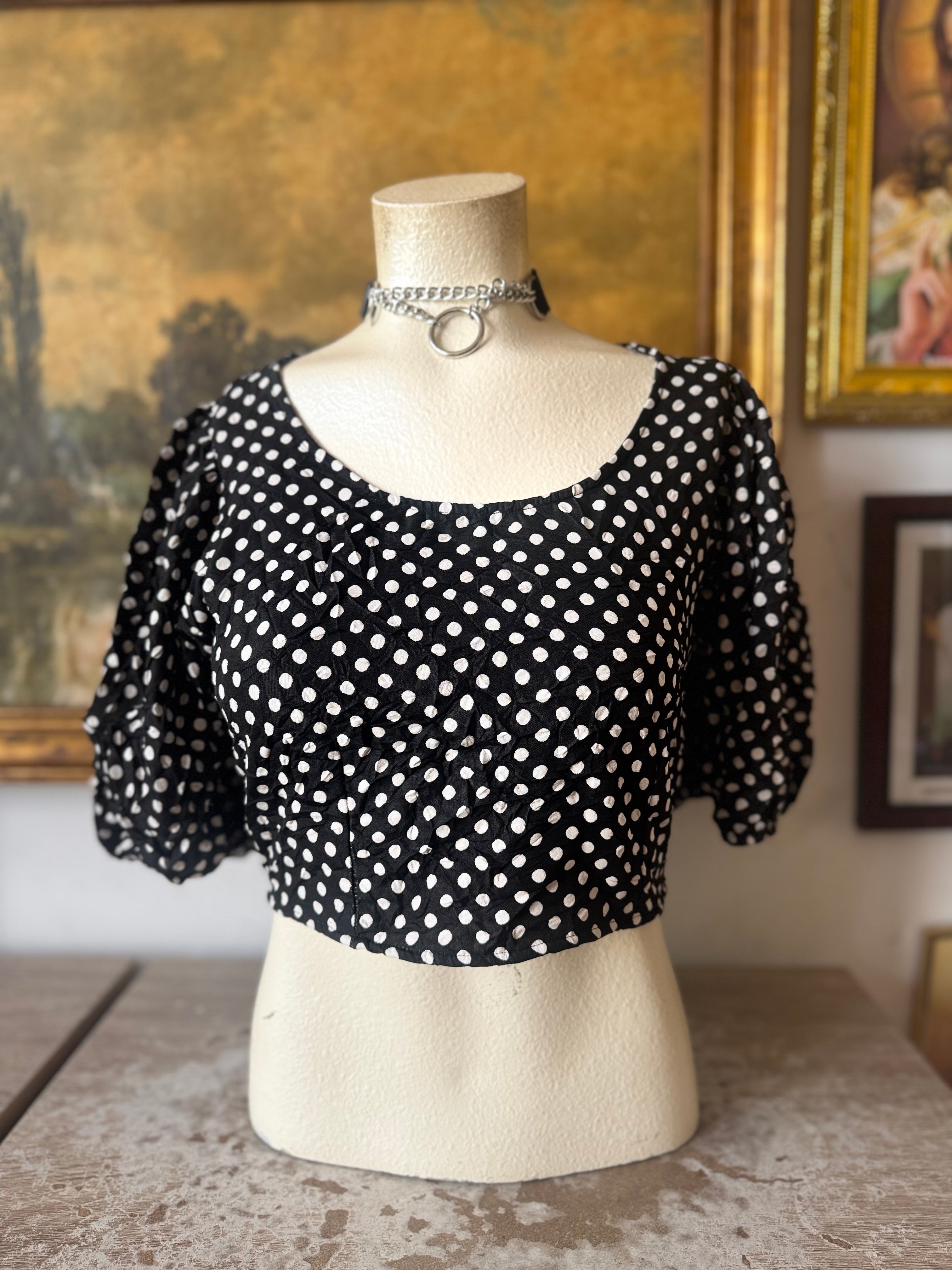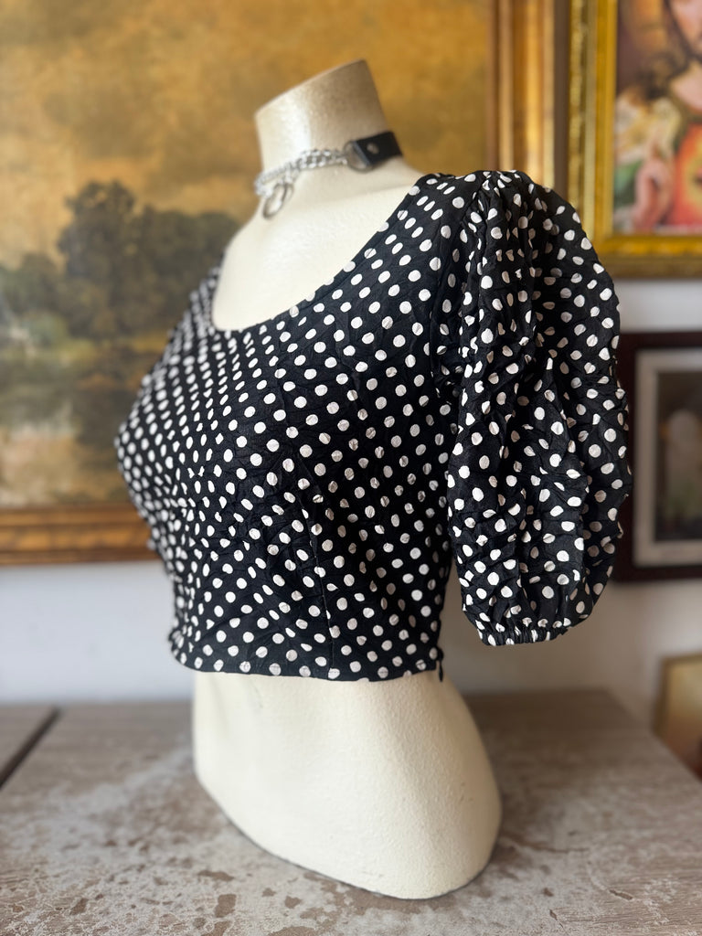 Free People Black & White Polka Dot Puff Sleeve Crop Top Size 4 AS IS