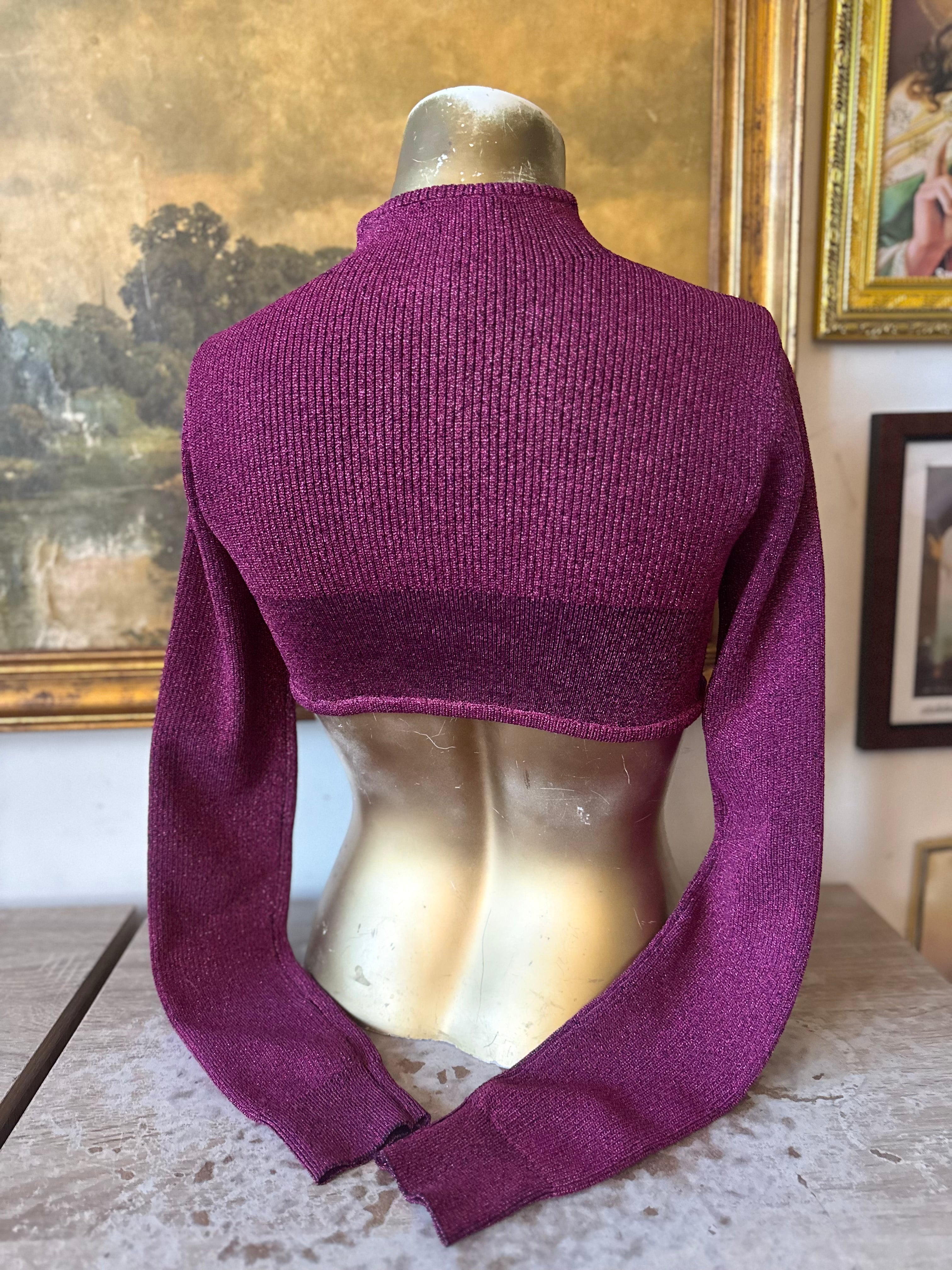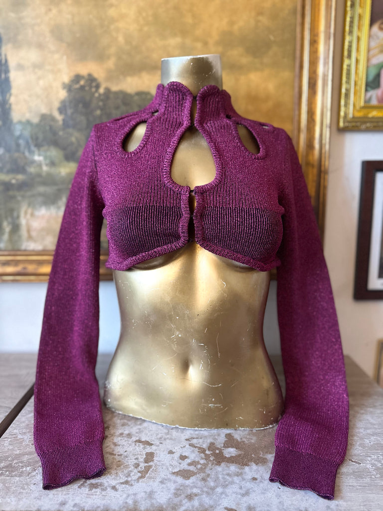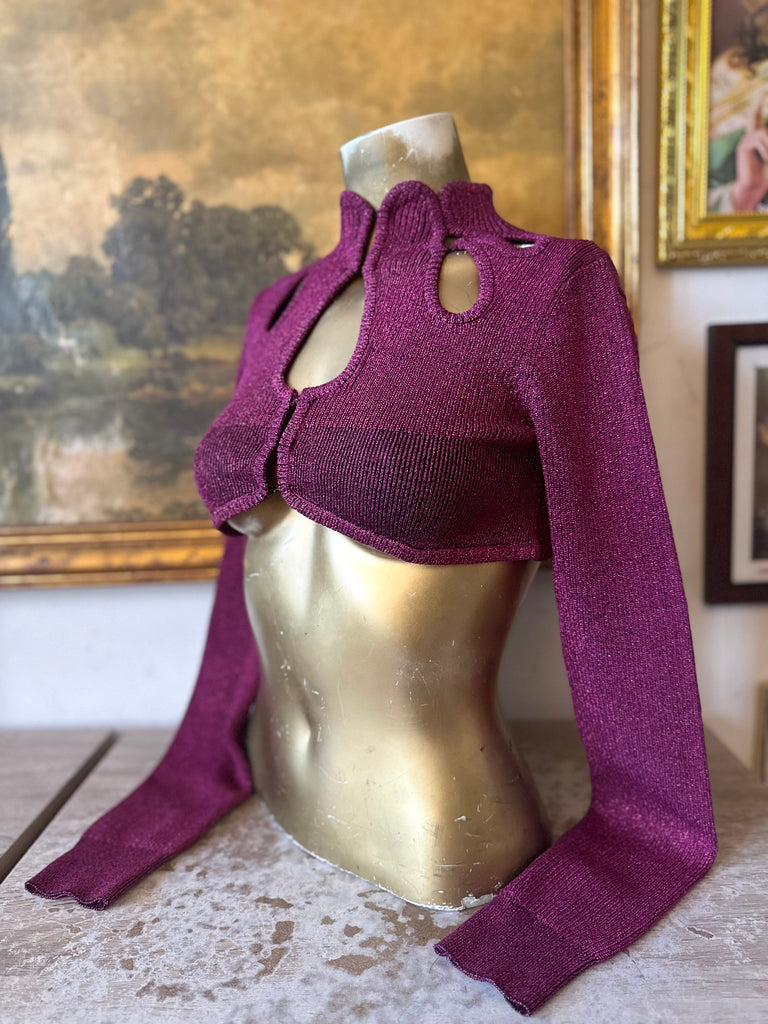 Maeve by Anthropologie Magenta Glitter Knit Keyhole Top One Size