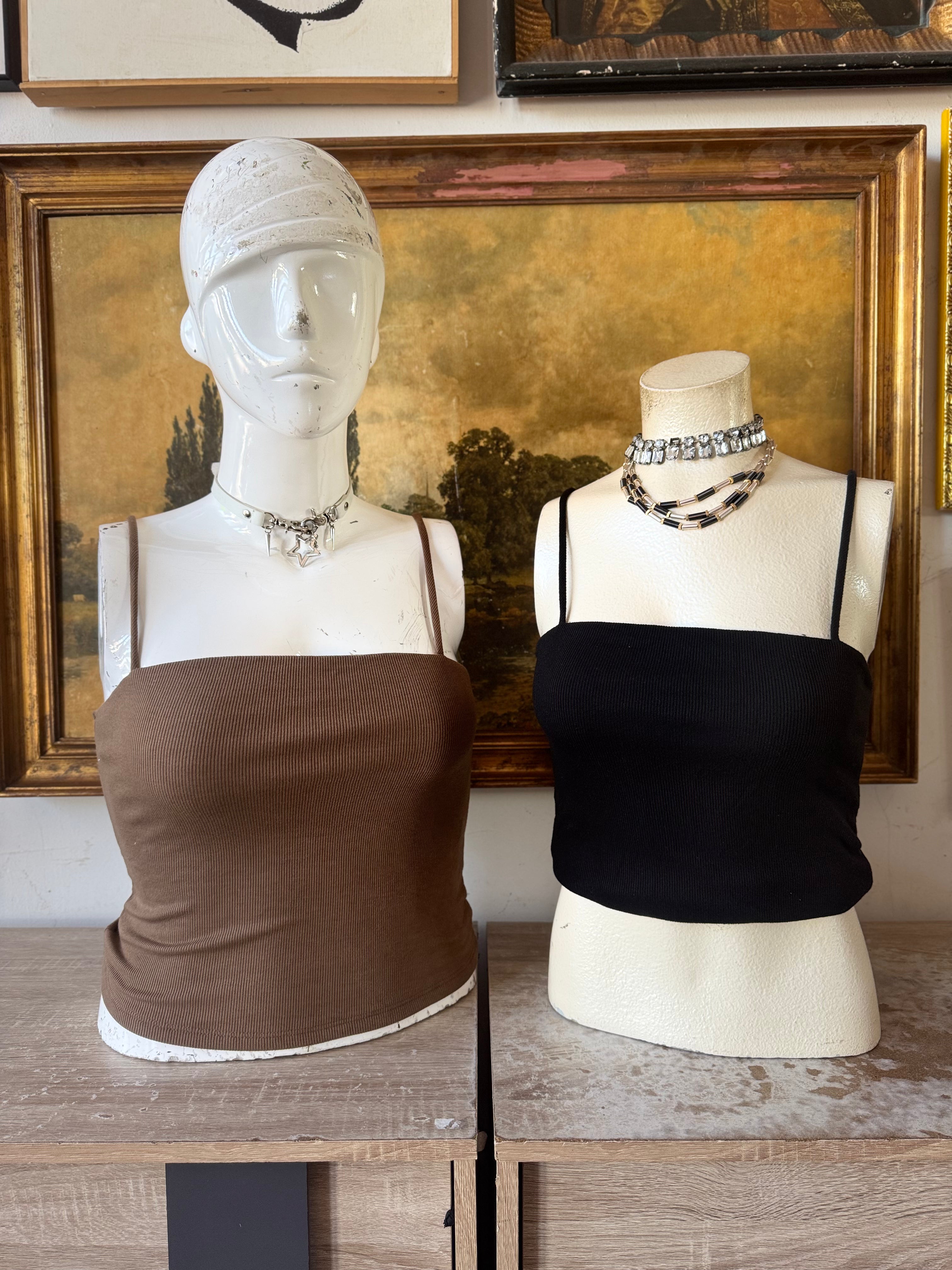 Brand New Black Gia Square Neck Ribbed Cami