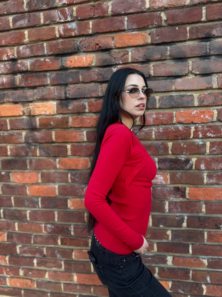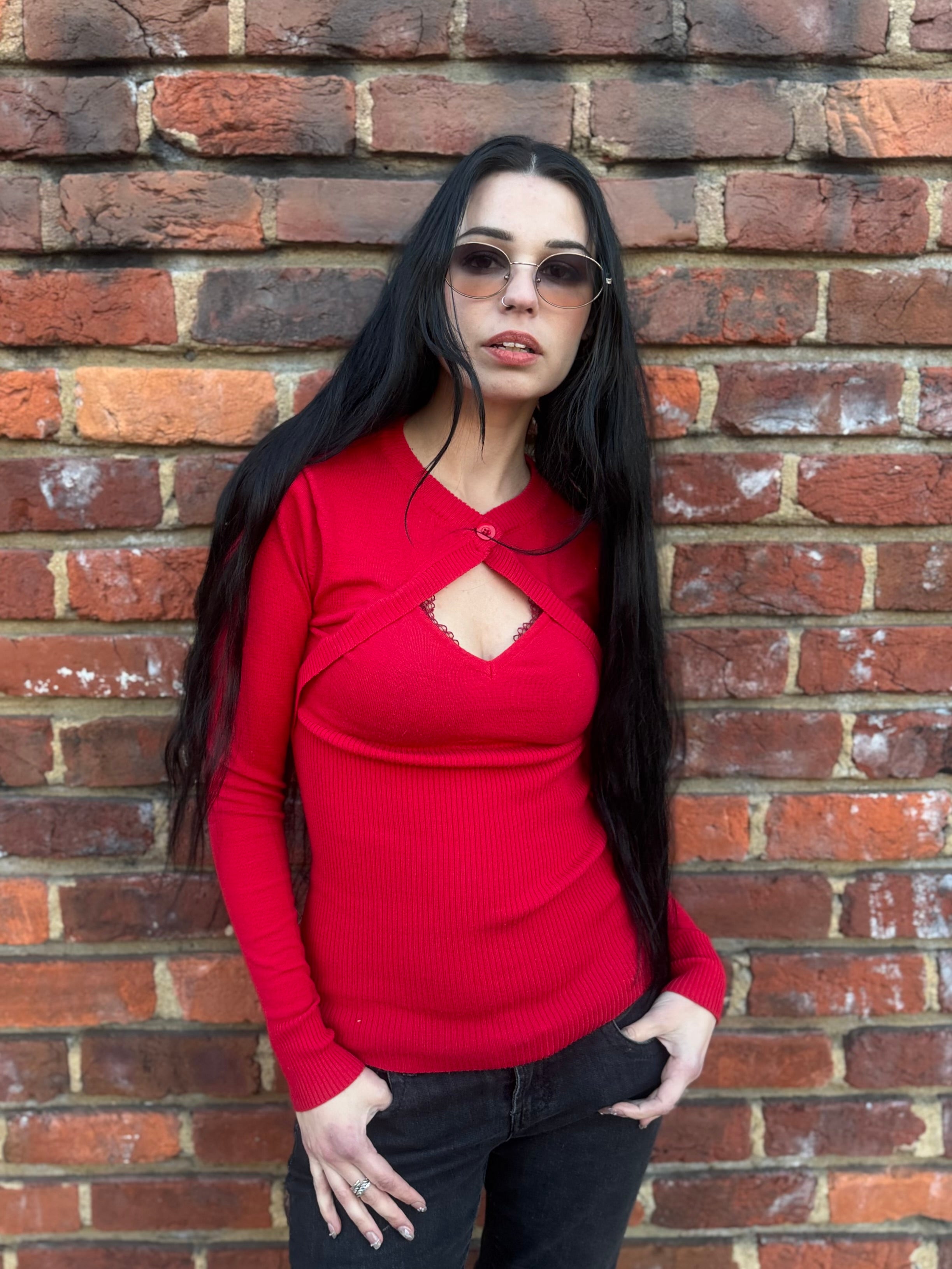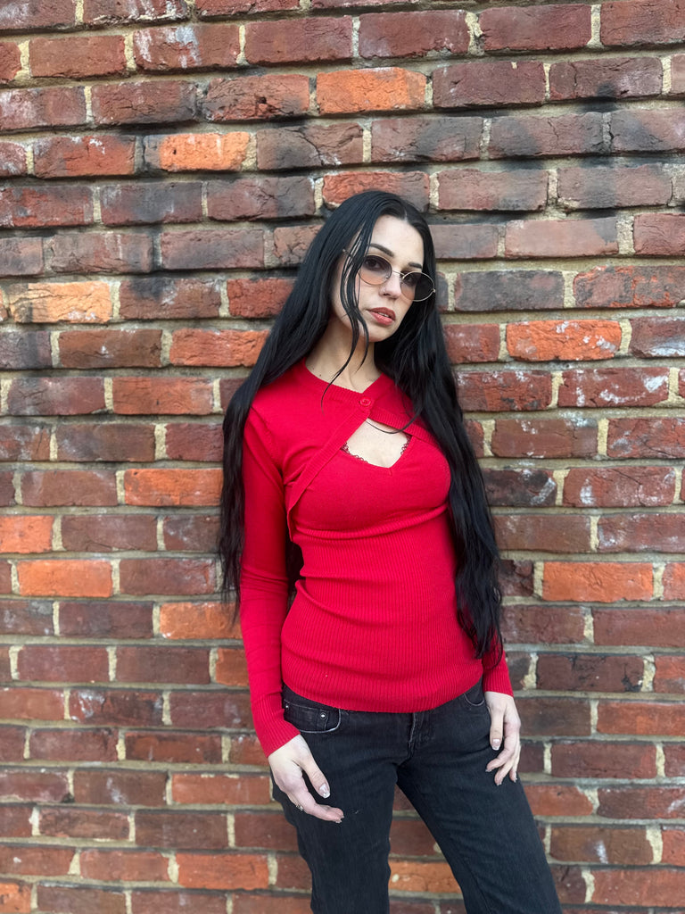 Y2K Red Layered Knit Bolero Top